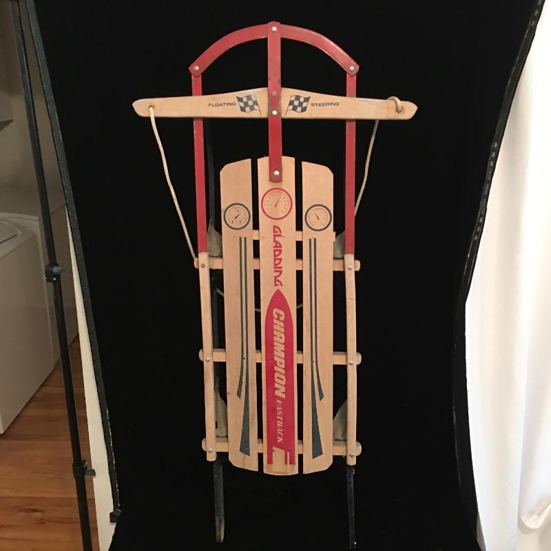 Vintage wooden Gladding Champion Fastback sled with floating steering. Be ready for winter with this old school sled that is very good condition. Sled measures 23.5” x 6” x 44.5”.