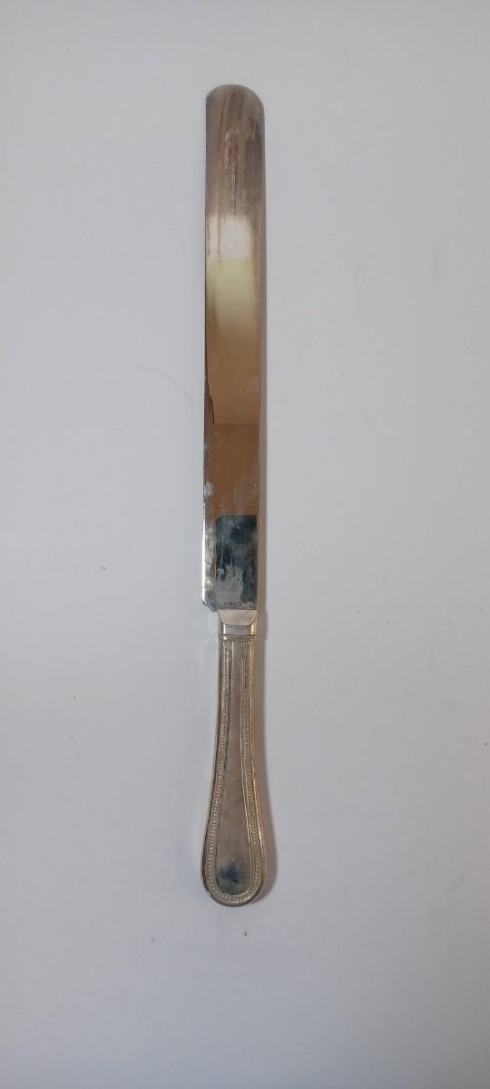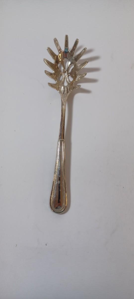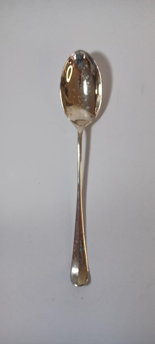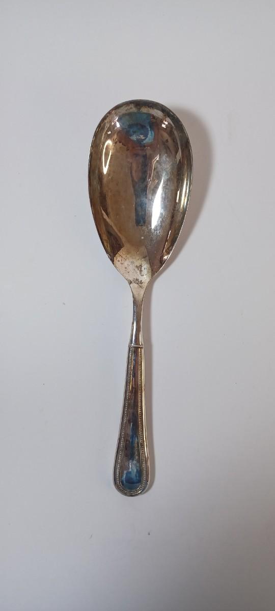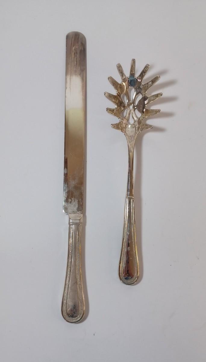 Set of serving utensils. Ladle and large spoons. Pasta spoon and cake knife.
