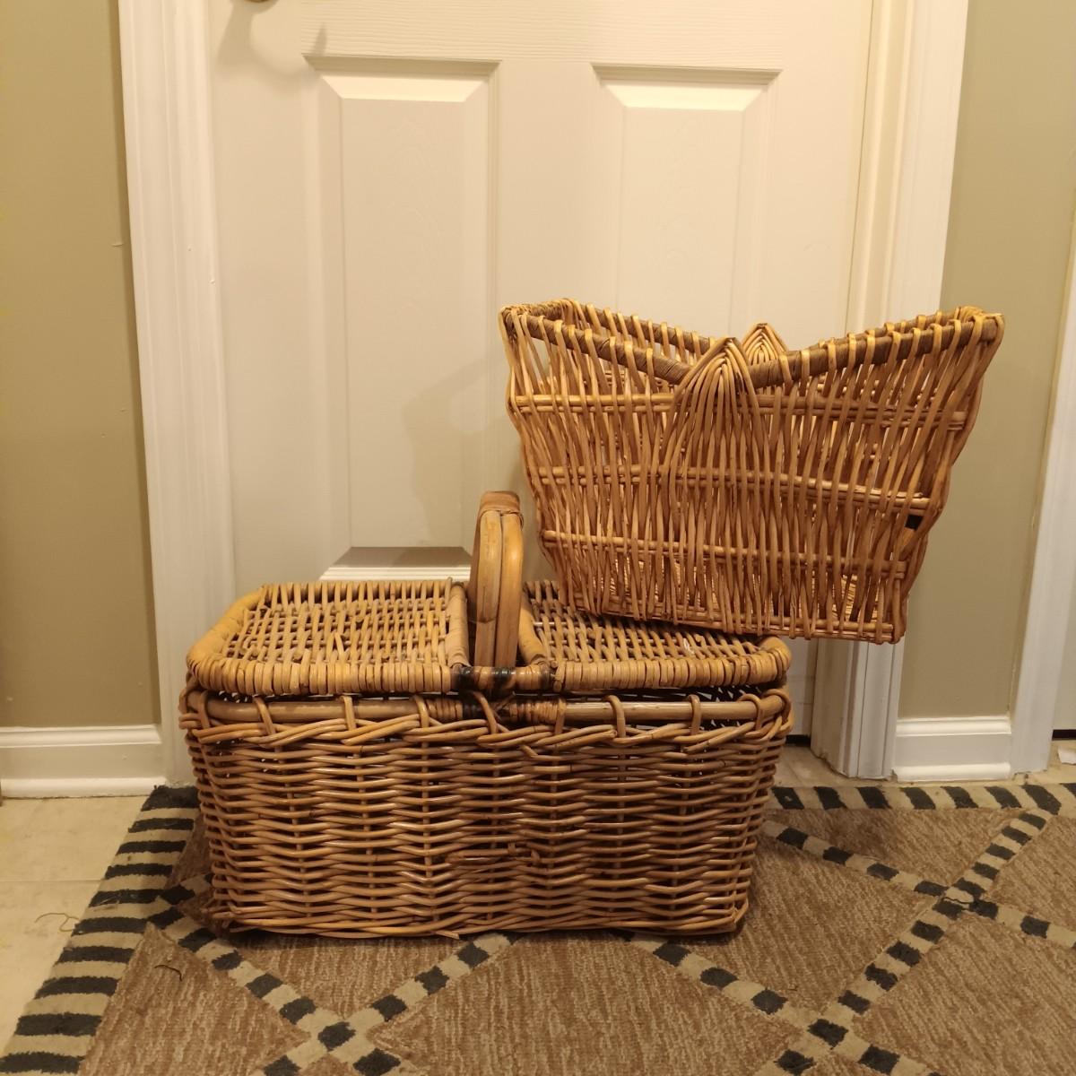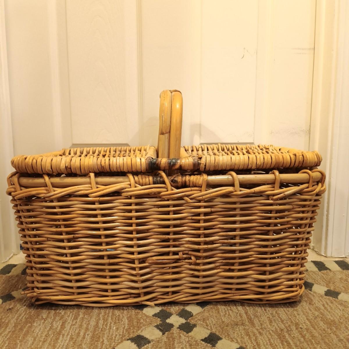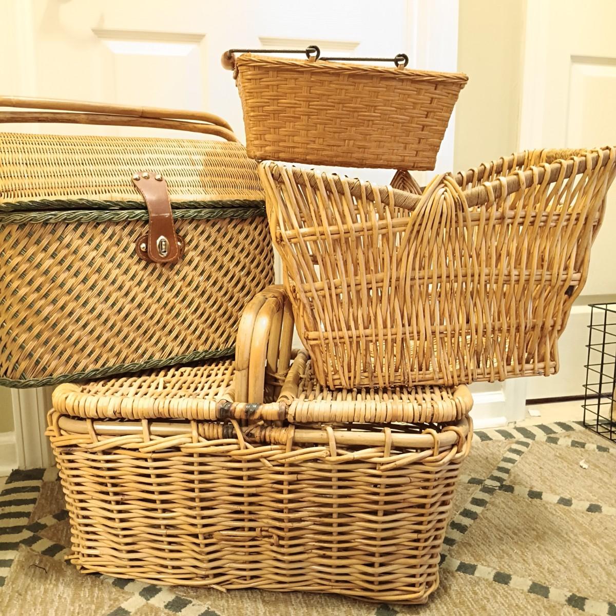 LOT 211: Collection of Wicker Baskets including a Vintage 80s Style Wicker Picnic Basket