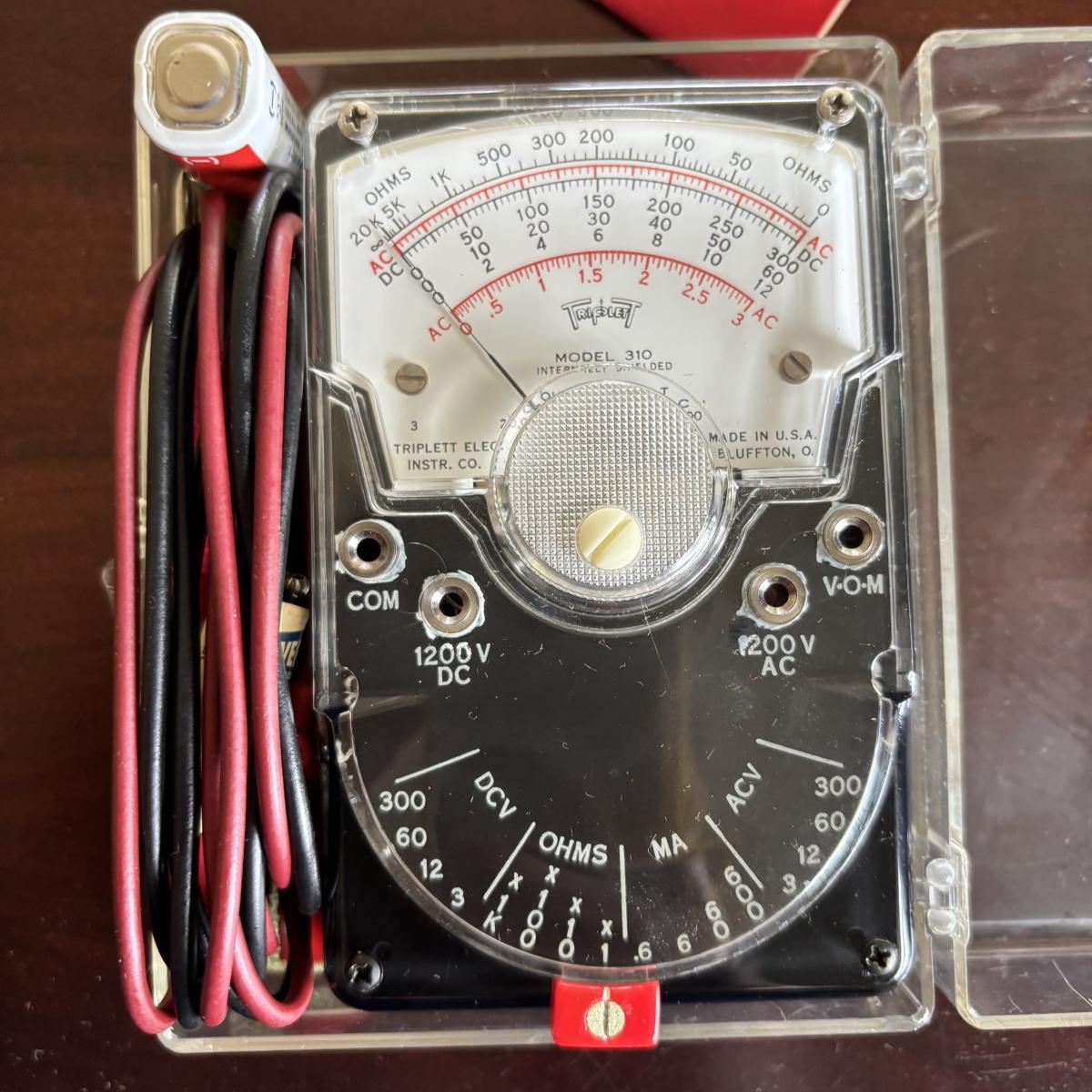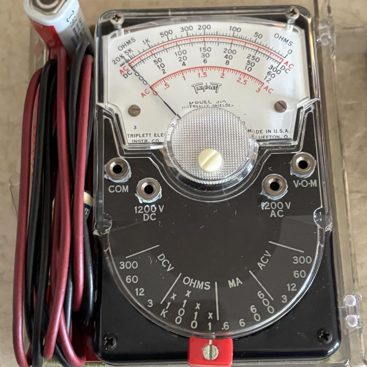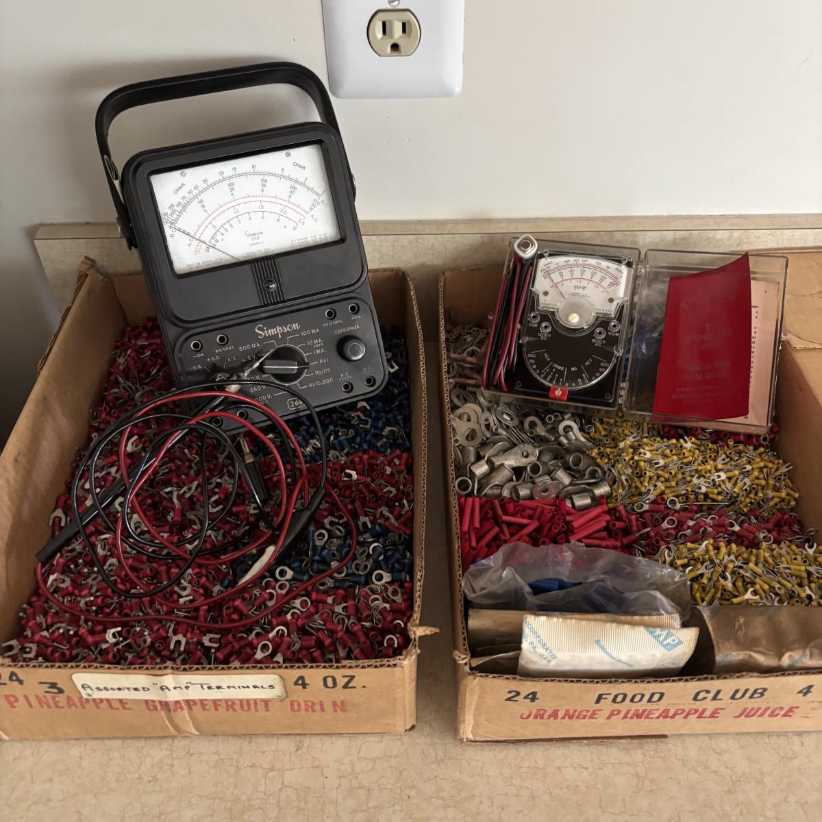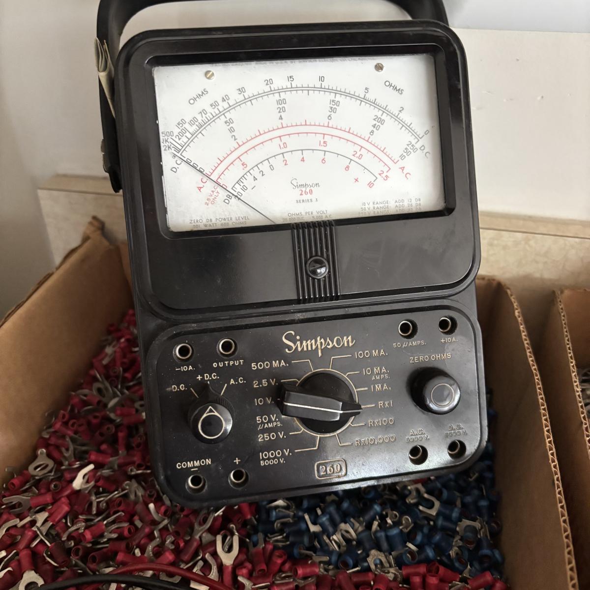 LOT 211: Vintage Triplet Analog Multimeter Model 310C w/Leads, James G Biddle Jagabi Speed Indicator, Vintage Simpson 260 Volt Ohm Series 7 Analog Multimeter, Wire Connectors & Ends