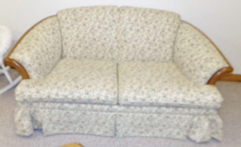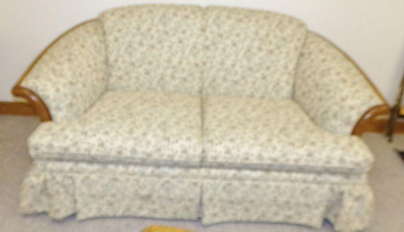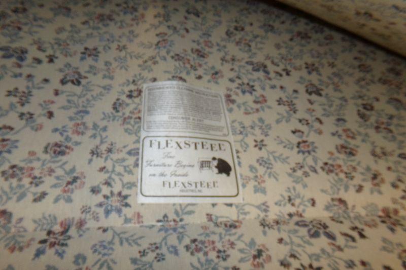2 LIGHT BLUE AND BROWN FLORAL PATTERN LOVE SEATS BY FLEX STEEL 64" LONG