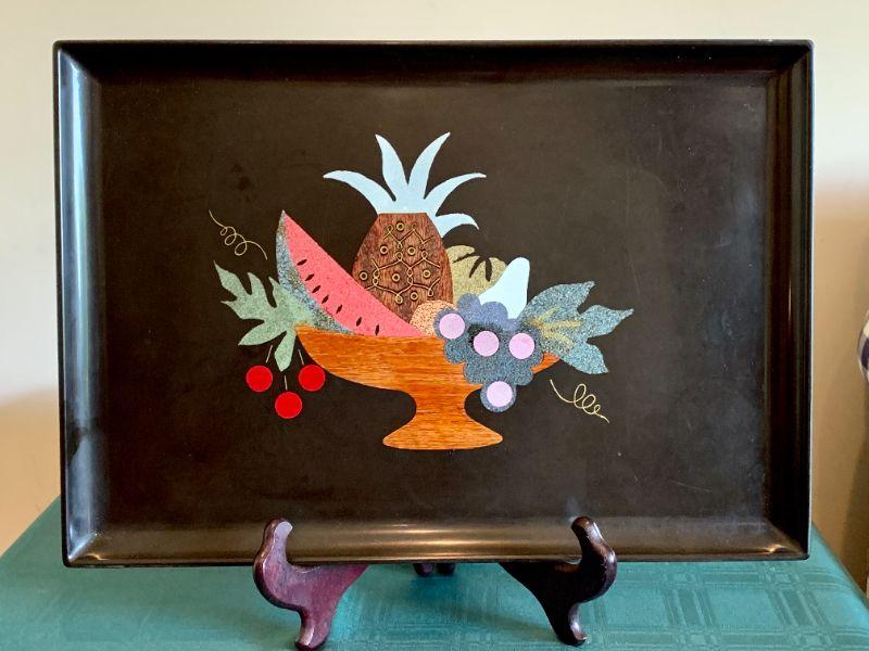 LOT 211 VINTAGE COUROC OF MONTEREY SERVING TRAY FRUIT BOWL MOTIF