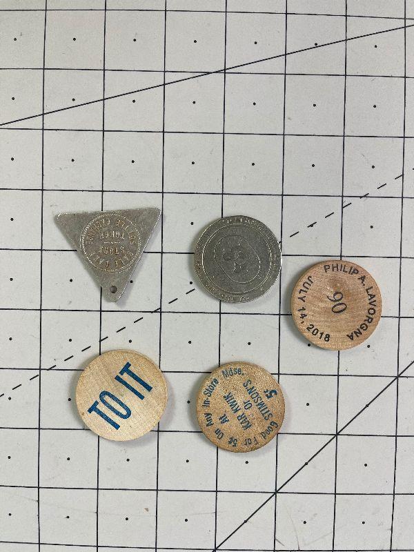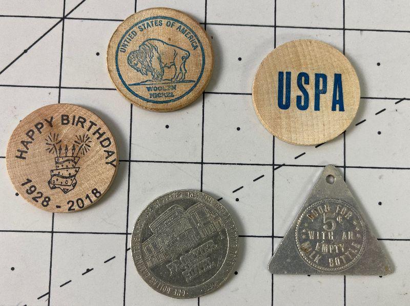 Lot #211 5 Tokens; Wooden Nickel etc.