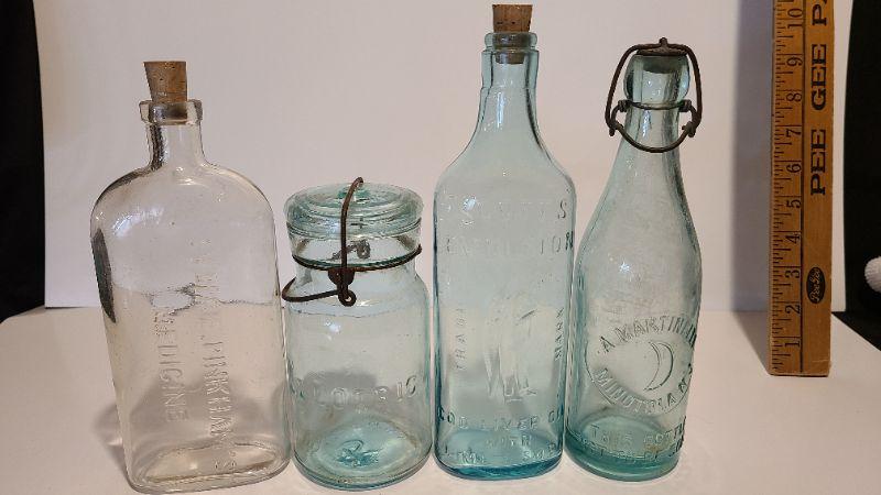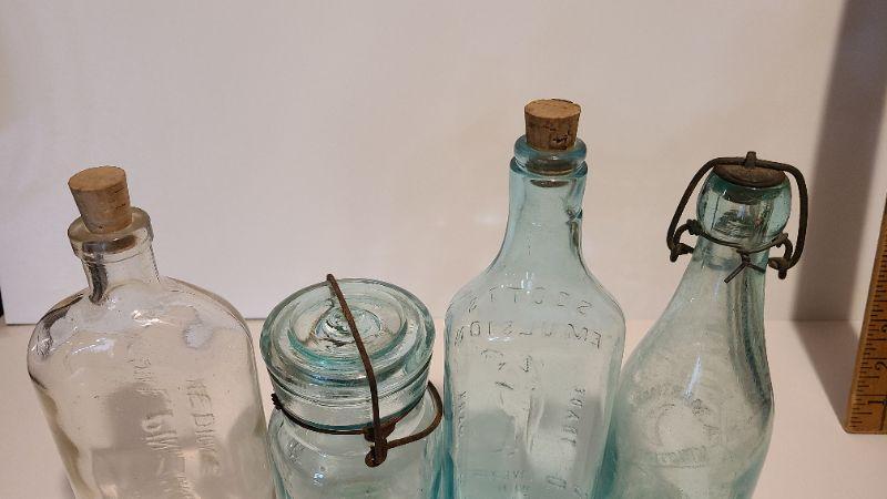 Each lot is unique and you will need to see all pictures. Pictures have been taken from all side to see condition and markings. What you see in the pictures is the actual content of the lot and the pictures are the best representation of the bottles. All bottles are sold-is according to the pictures. For further information please google the makers marks for age.