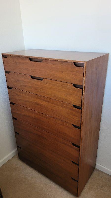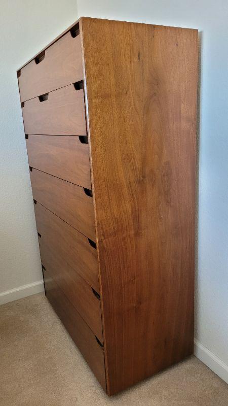 Lot 211: Vintage LANE Mid Century Modern Tall Walnut Dresser
