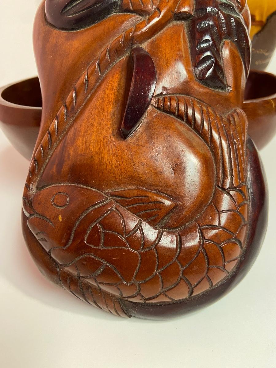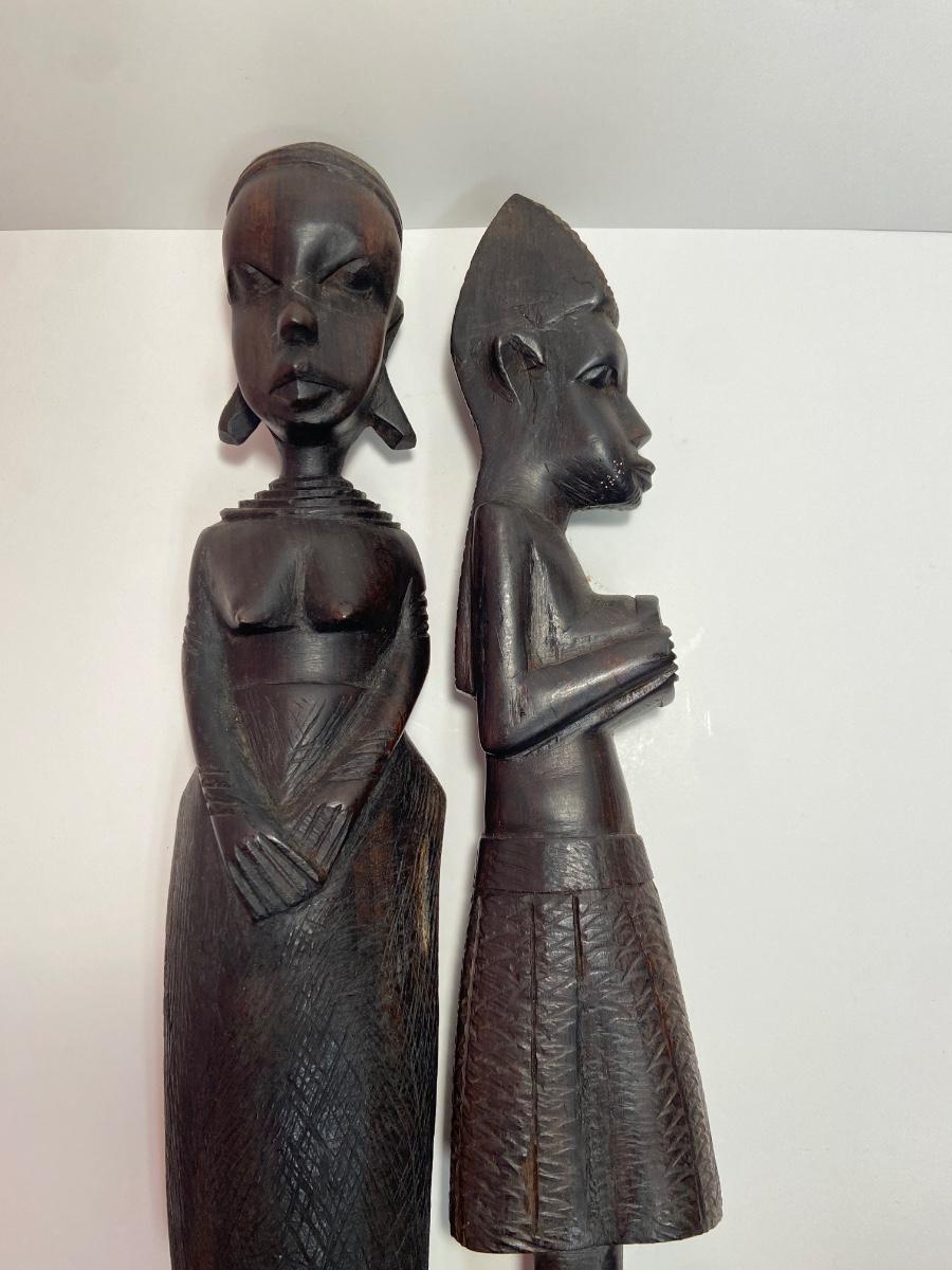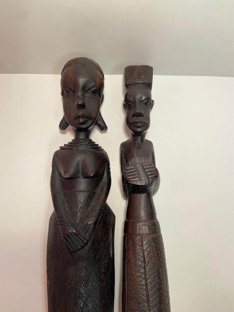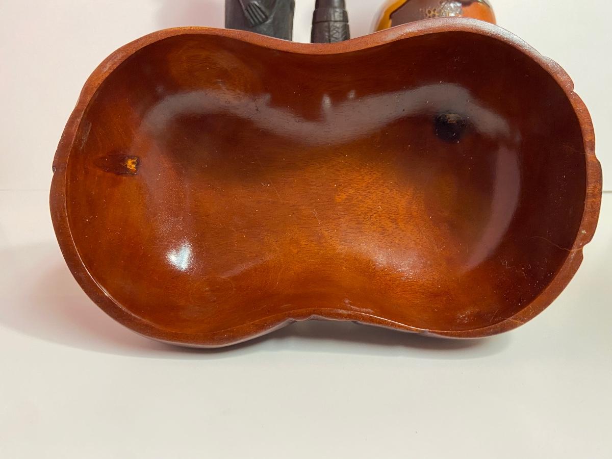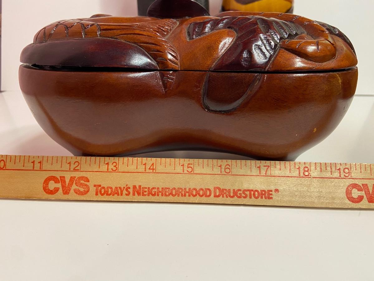VTG Tanganyika Statues, Hand Carved, Tanzania Wood, Vintage Royal Haeger Pottery Earth Wrap Vase,Oaxaca Mexican Black Clay Pottery Bird and a Carved lidded bowl