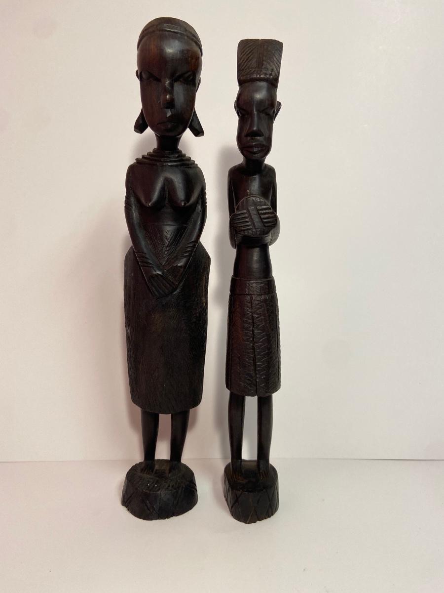 Lot 228: Multicultural Collection: MCM Royal Haeger Pottery, Tanzania Statues. Mexican Black Clay