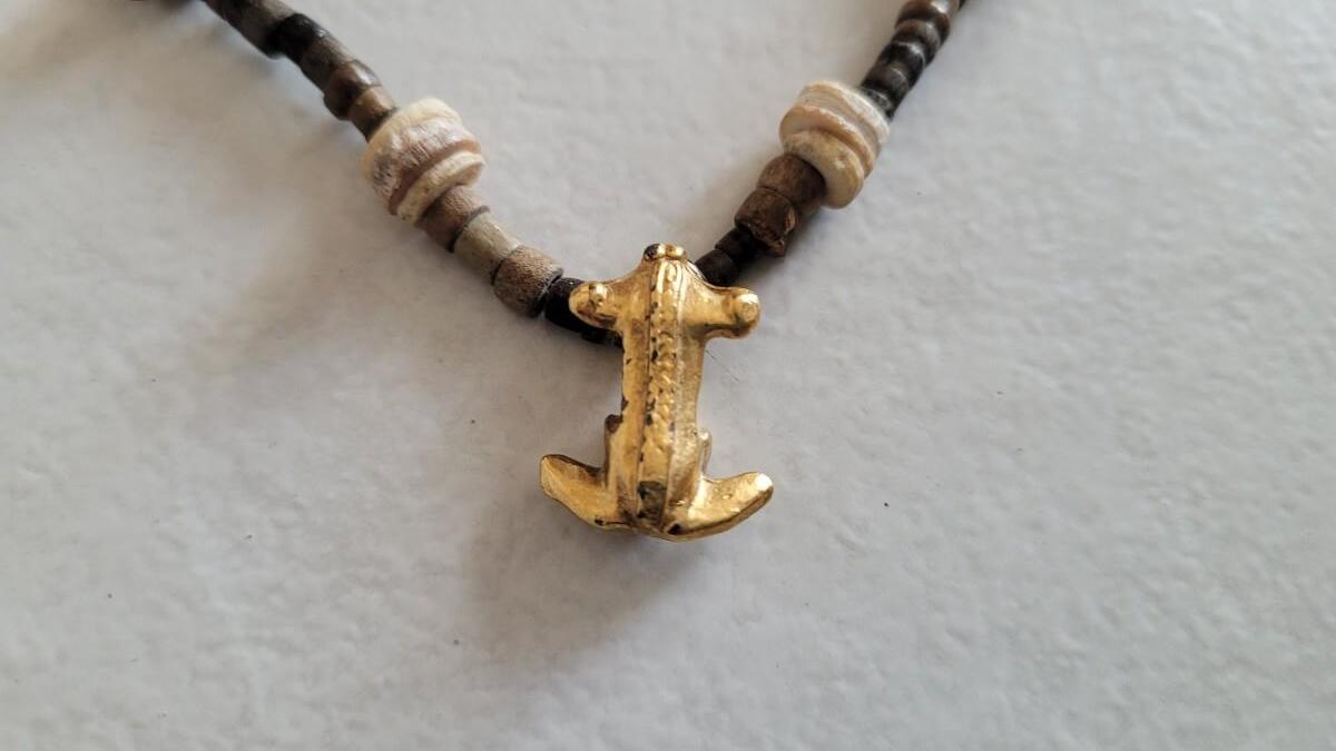 Lot 211: Vintage Heishi Bead Necklace with Shells and Repro Gold Pendant
