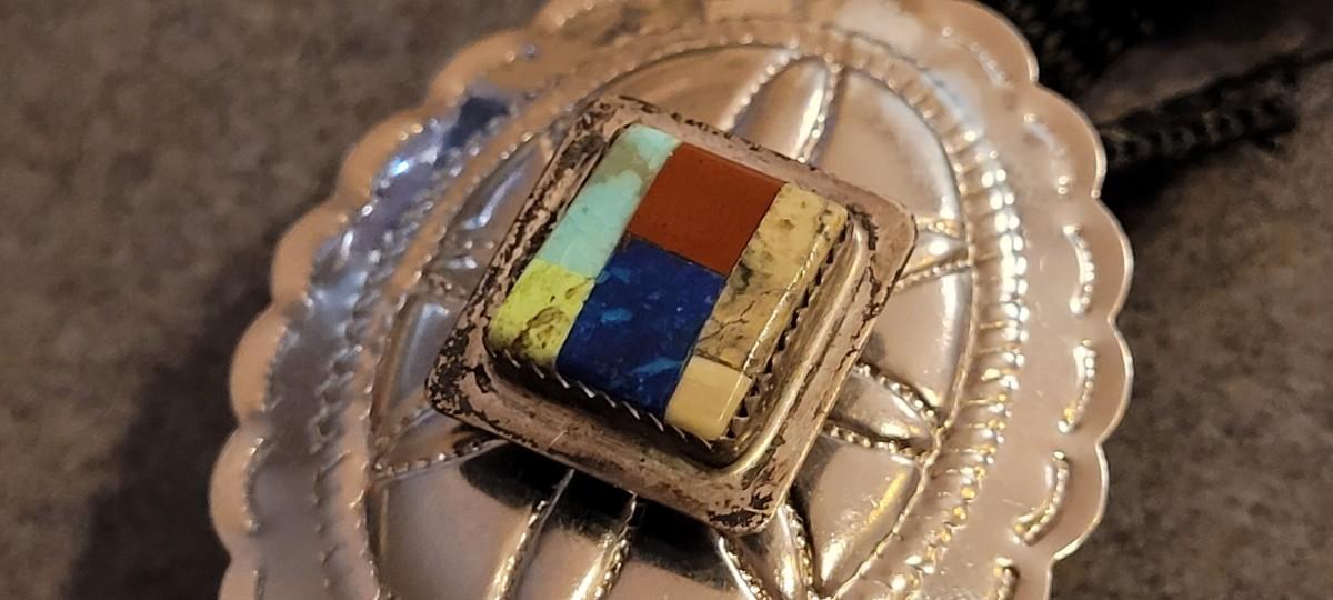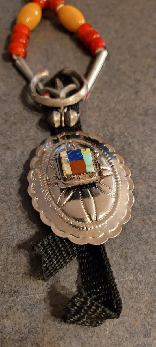 Lot 211: Vintage Squash Blossom and Inlay Pendant Original Creation