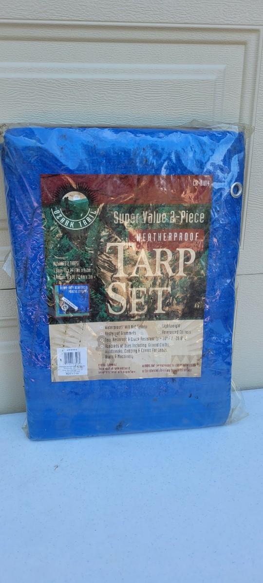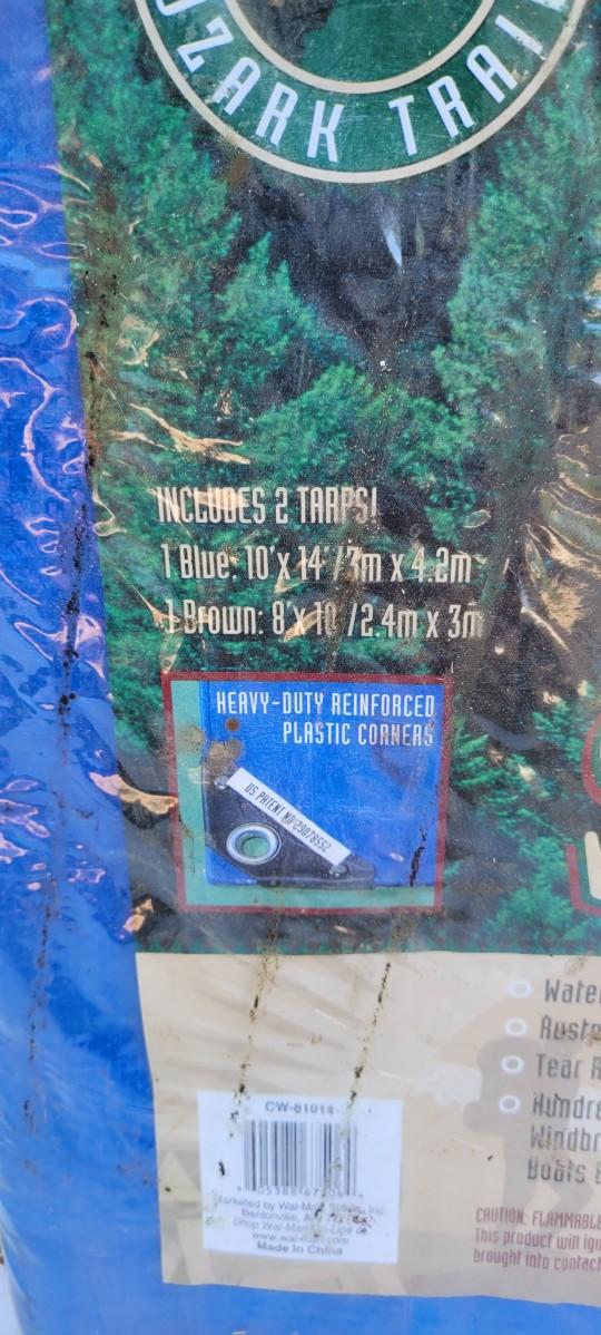 This package includes one Brown and One Blue Tarp. Unopened never used.