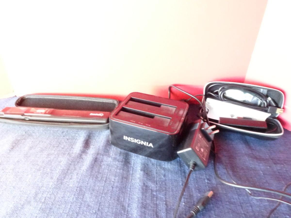 LOT 211. INSIGNIA DUAL HAARD DRIVE DOCKING STATION, PORTABLE SCANNER AND EARWAX CLEAN TOOL