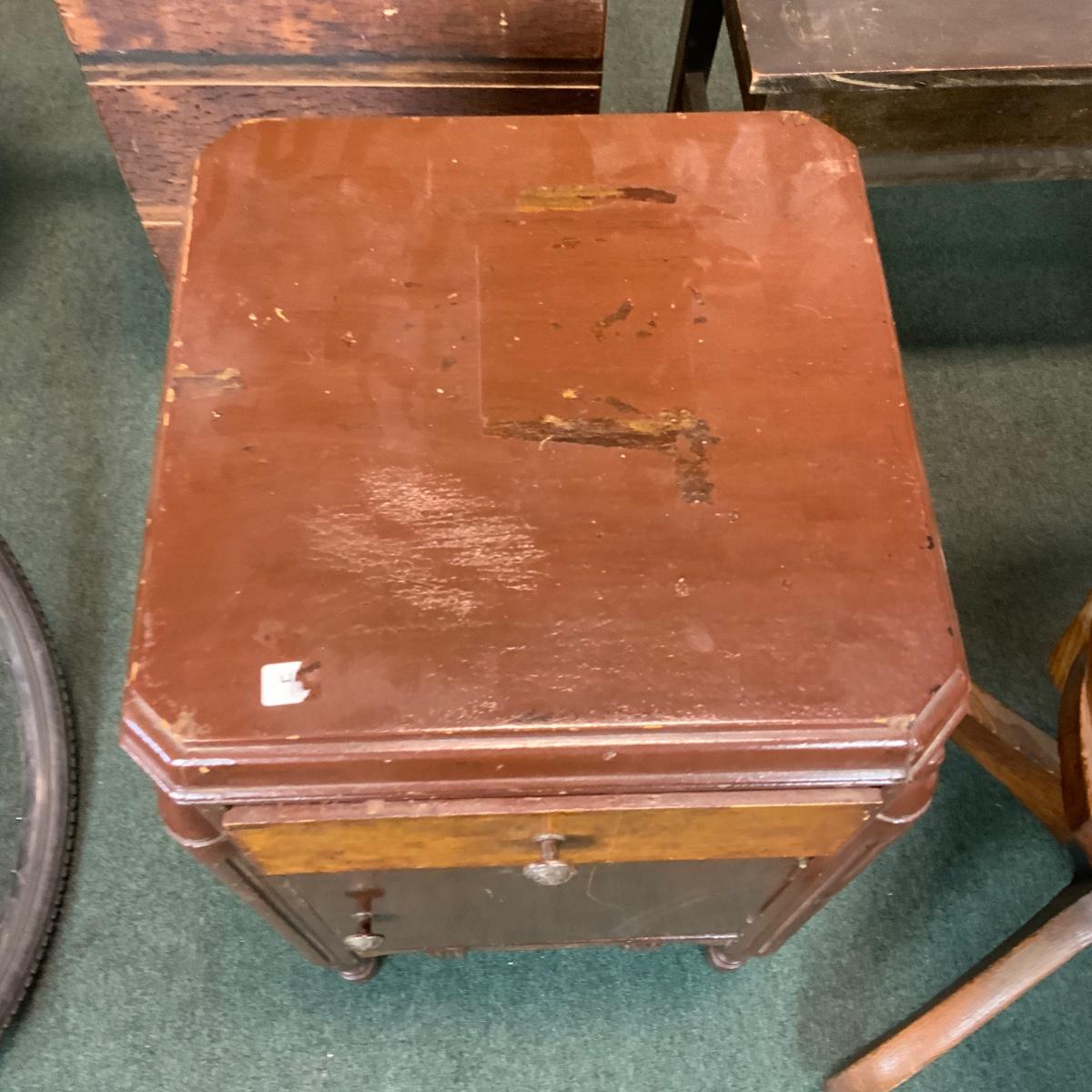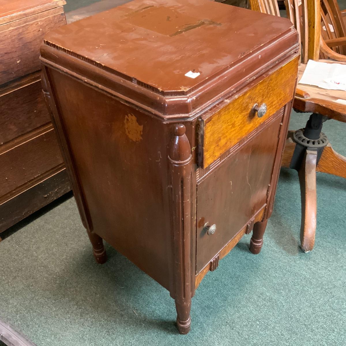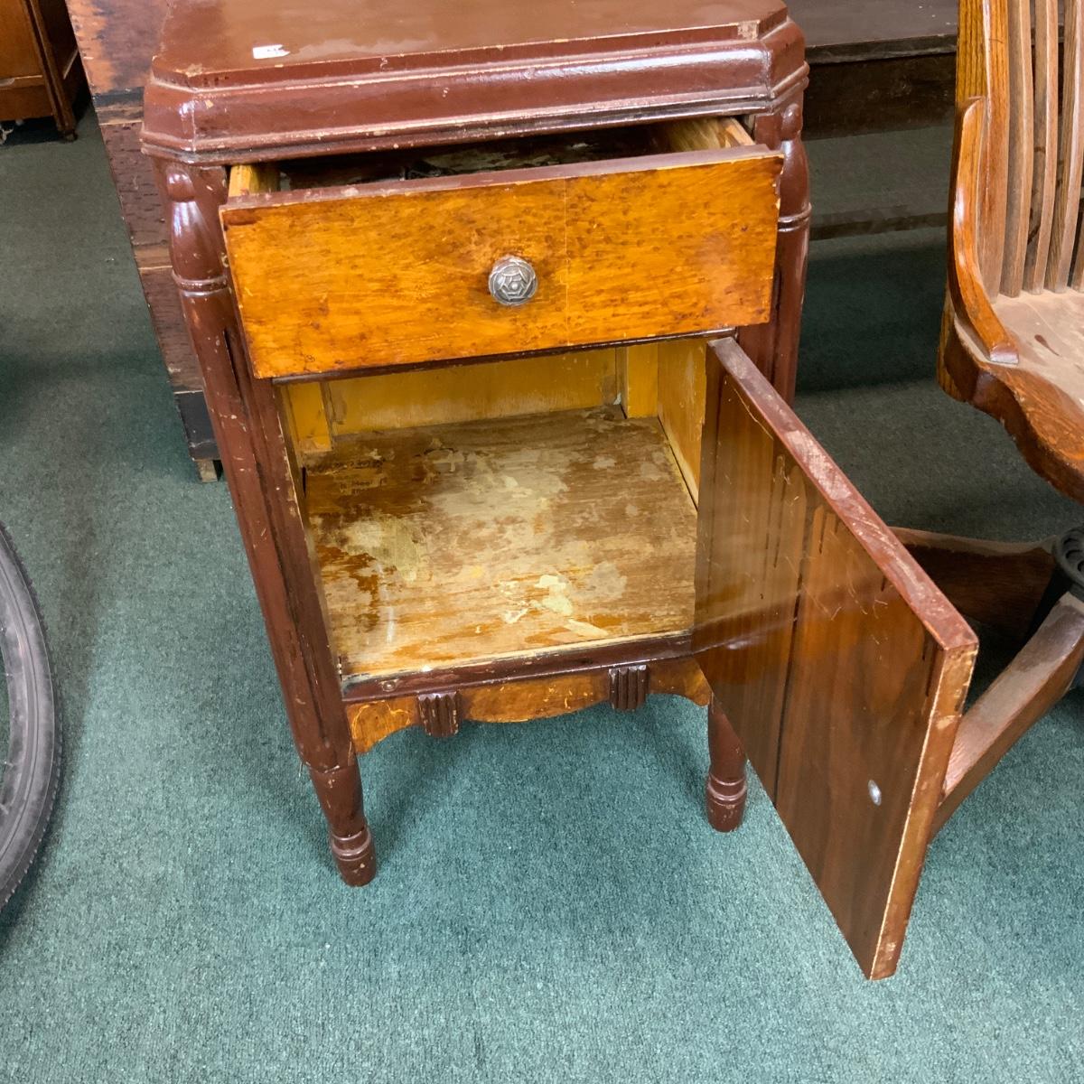 Art Deco Nightstand. Needs minimal work to make it perfect. Original Casters included. //::\\ Please see photos for details and condition. No attempt has been made to hide any imperfections. All items listed in this auction are warehouse items, and need to be cleaned. A majority of the items need restoration as well. All items are sold AS IS and WITHOUT GUARANTEE. If you are uncertain about an item, DO NOT BID. Due to the nature of this online auction in-person inspection is HIGHLY recommended. All Sales are FINAL. Pick Up Times are FIRM. Please confirm with your own schedule that you can pick up in the scheduled times listed in the Terms and Conditions. Any questions please message the auctioneer. DO NOT Contact The Harp Gallery.
