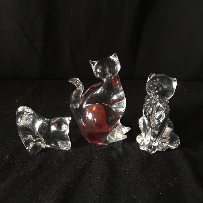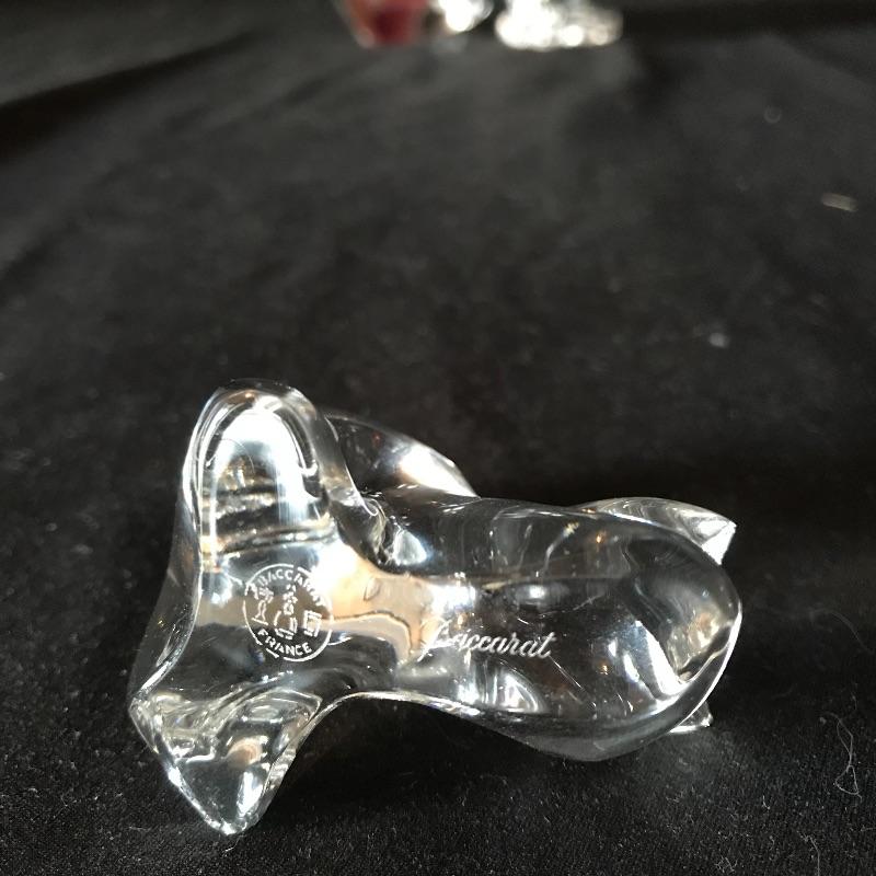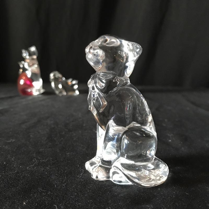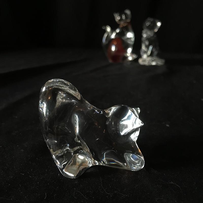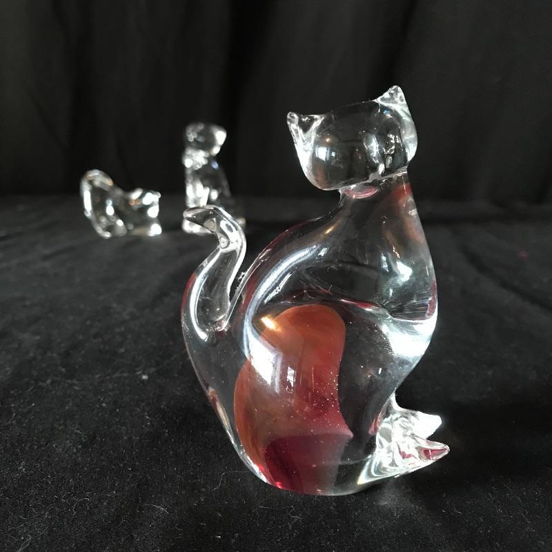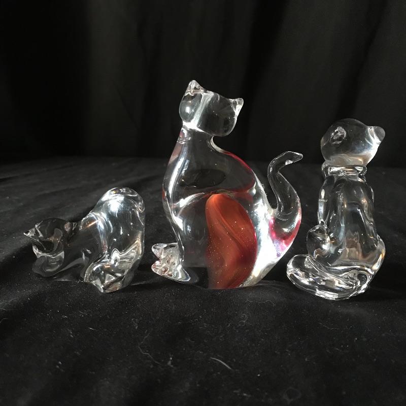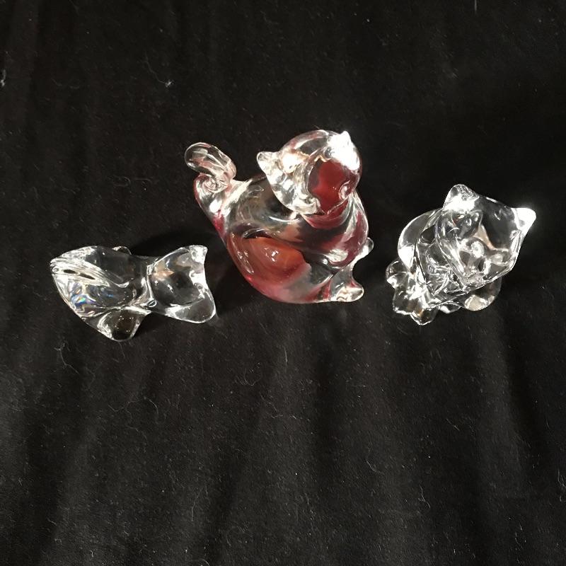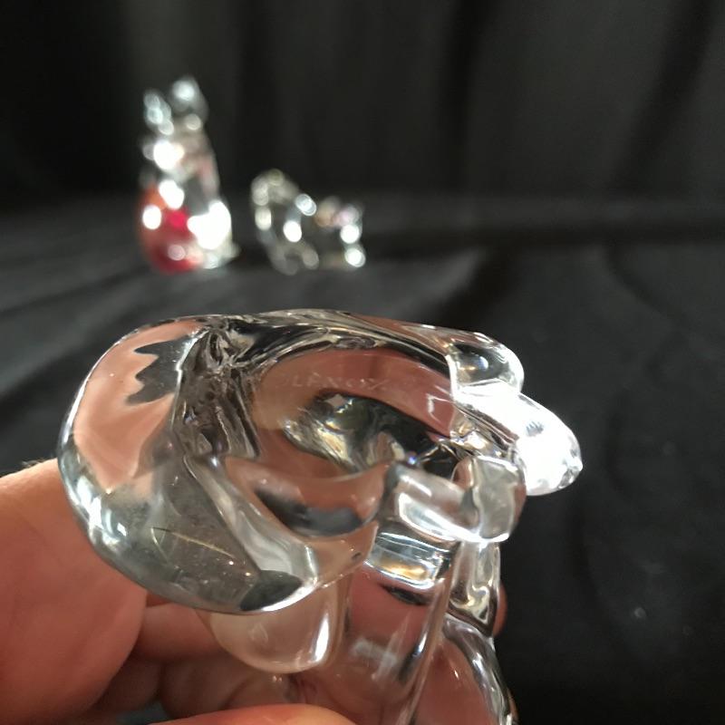 Three lovely little cat figurines to light up your home! All pieces are marked, one is Baccarat France, another is Lenox and the third has burnt orange/red flair and a gold colored VR sticker. This piece is the tallest at 4” tall. Don’t let these kitties get away! Shipping available.
