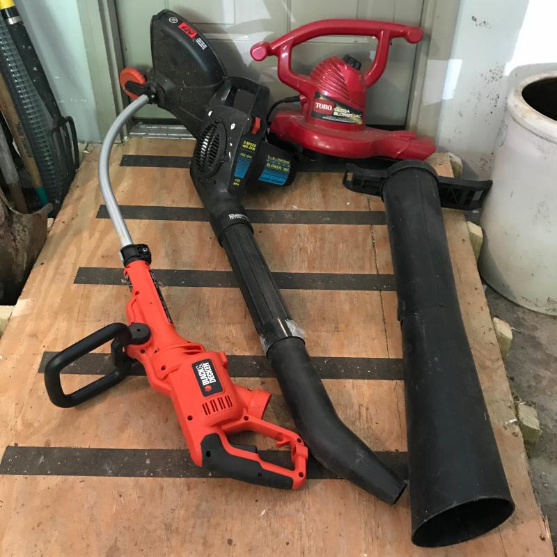 Two electric blowers (one Craftsman. One Toro) Missing a few attachments. Lot also includes Black and Decker Electric Weed Eater. Worked when plugged in. No Shipping. Local Pick up Only