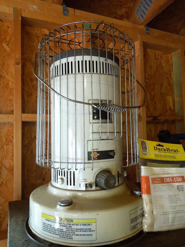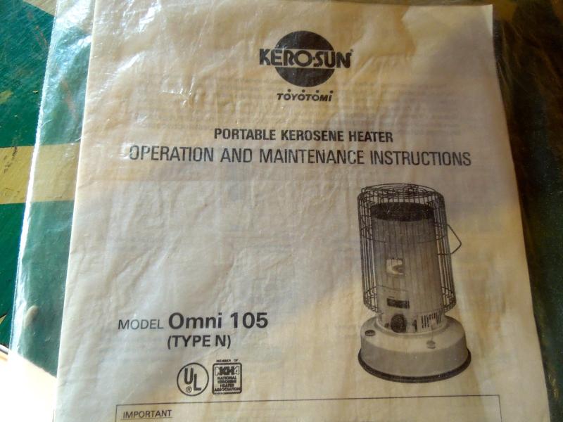 Nice Kersosun Omni 105 unit in very good condition along with plastic 5 gallon size kerosene jug and extra wick for heater. Manual also included.