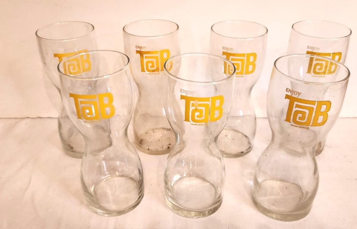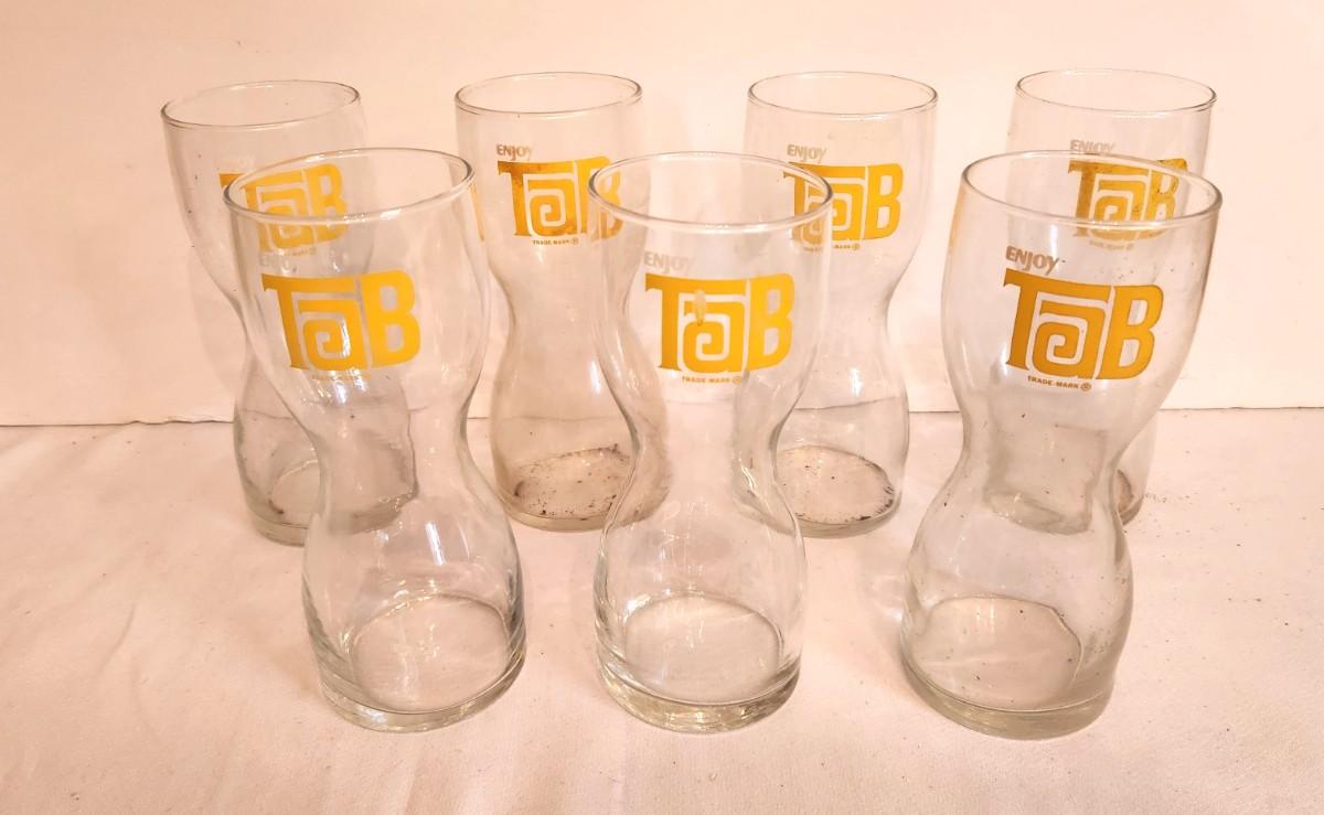Remember TAB in the days before Diet Coke! Lot of 7 TAB drinking glasses, each 7" tall.