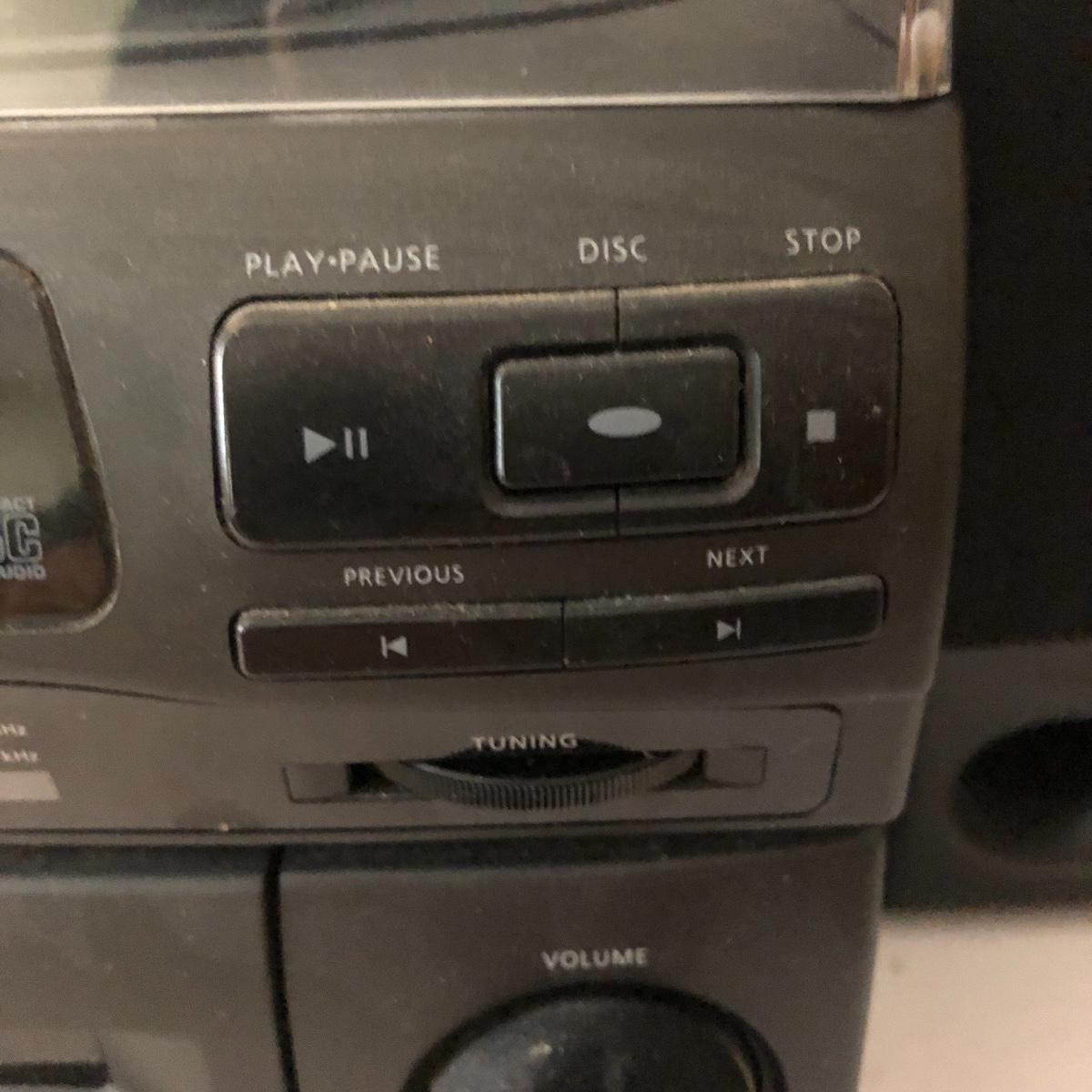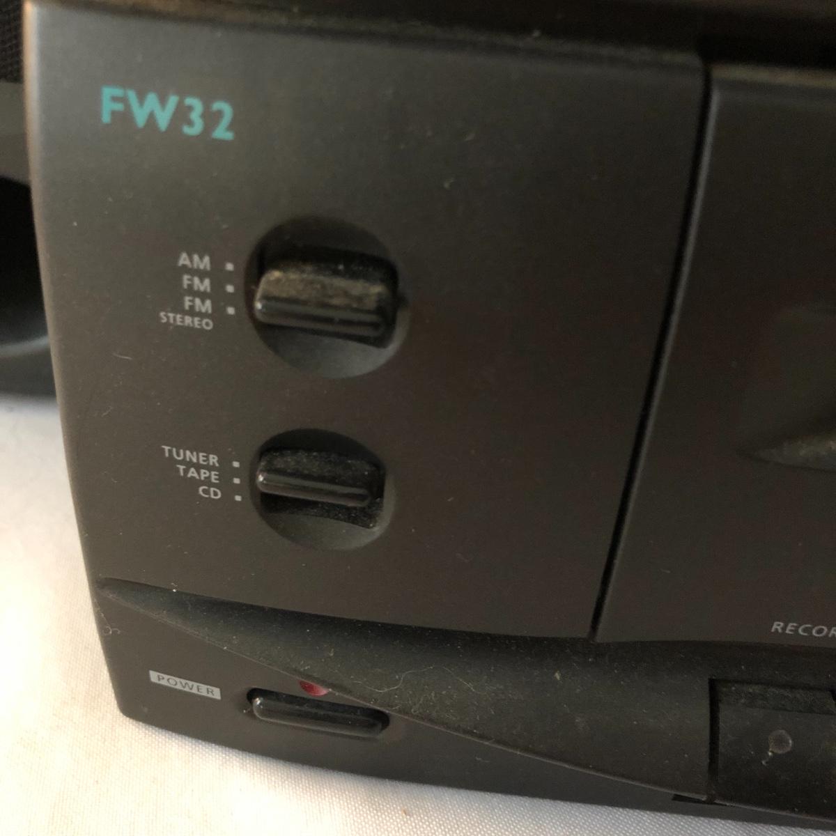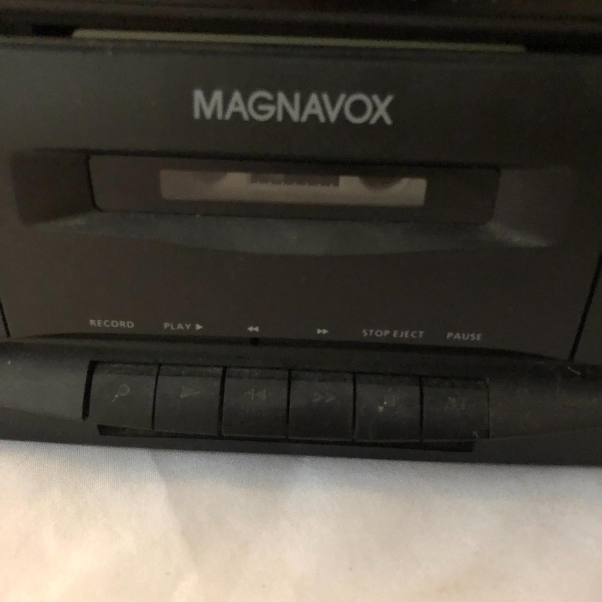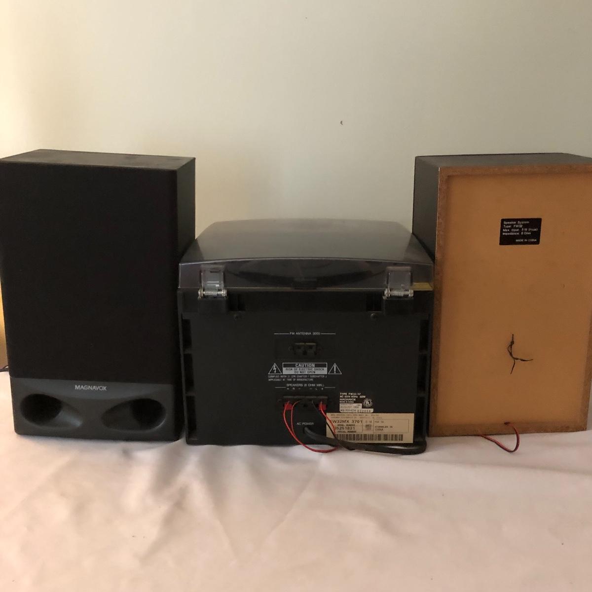 Get your groove on with this Magnavox model# FW32 three CD changer, cassette player with AM/FM radio and two speakers. Radio worked when tested, as well as tape deck and CD player. Stereo measures 11” x 12” x 9” without speakers.