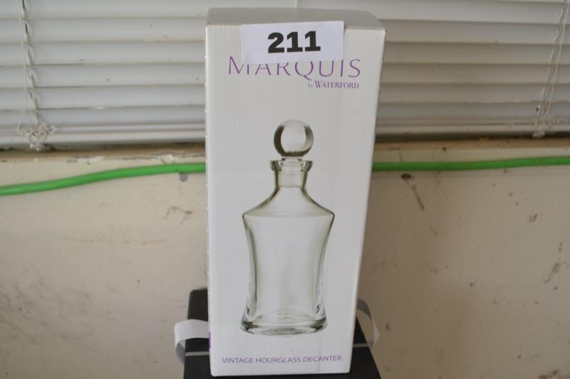 LOT 211. MARQUIS BY WATERFORD DECANTER AND FOUR WINES GLASSES (NEW IN BOX)