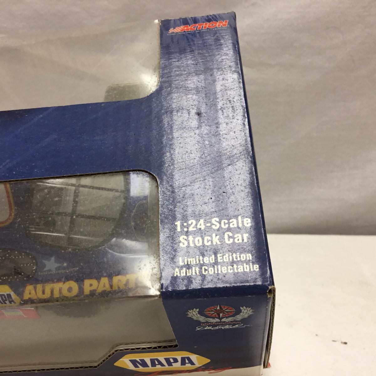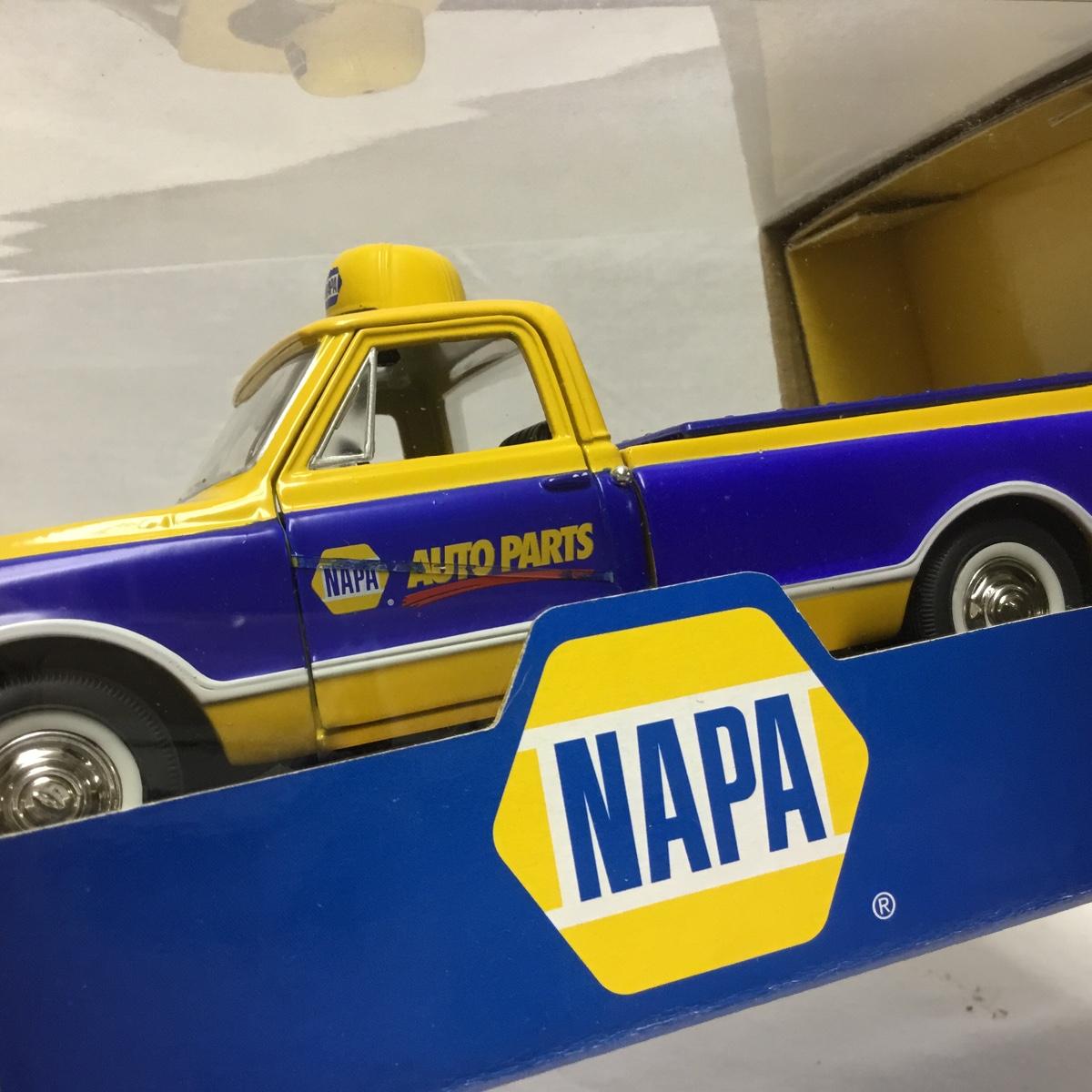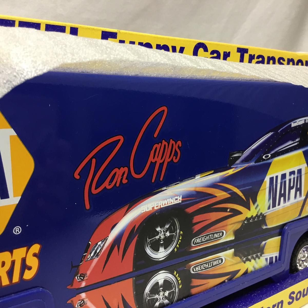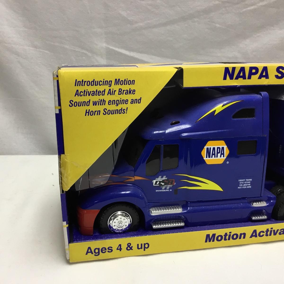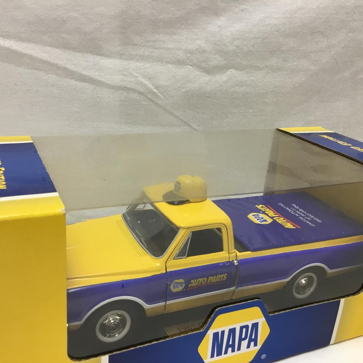 Lot includes eight packaged NAPA truck and race car figurines. Three Michael Waltrip 1:24-Scale stock car/race car included. See photos. 1967 Chevy Pickup as well as a small NASCAR Winners Circle race car included. 2005 parts delivery pick up truck, 2007 exclusive parts delivery pick up truck that is blue with flames on the side, and one large 2008 exclusive NAPA stamped steel funny car transporter. See photos for details and part numbers.