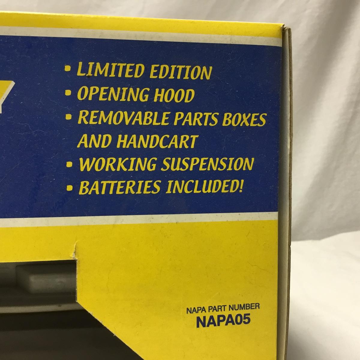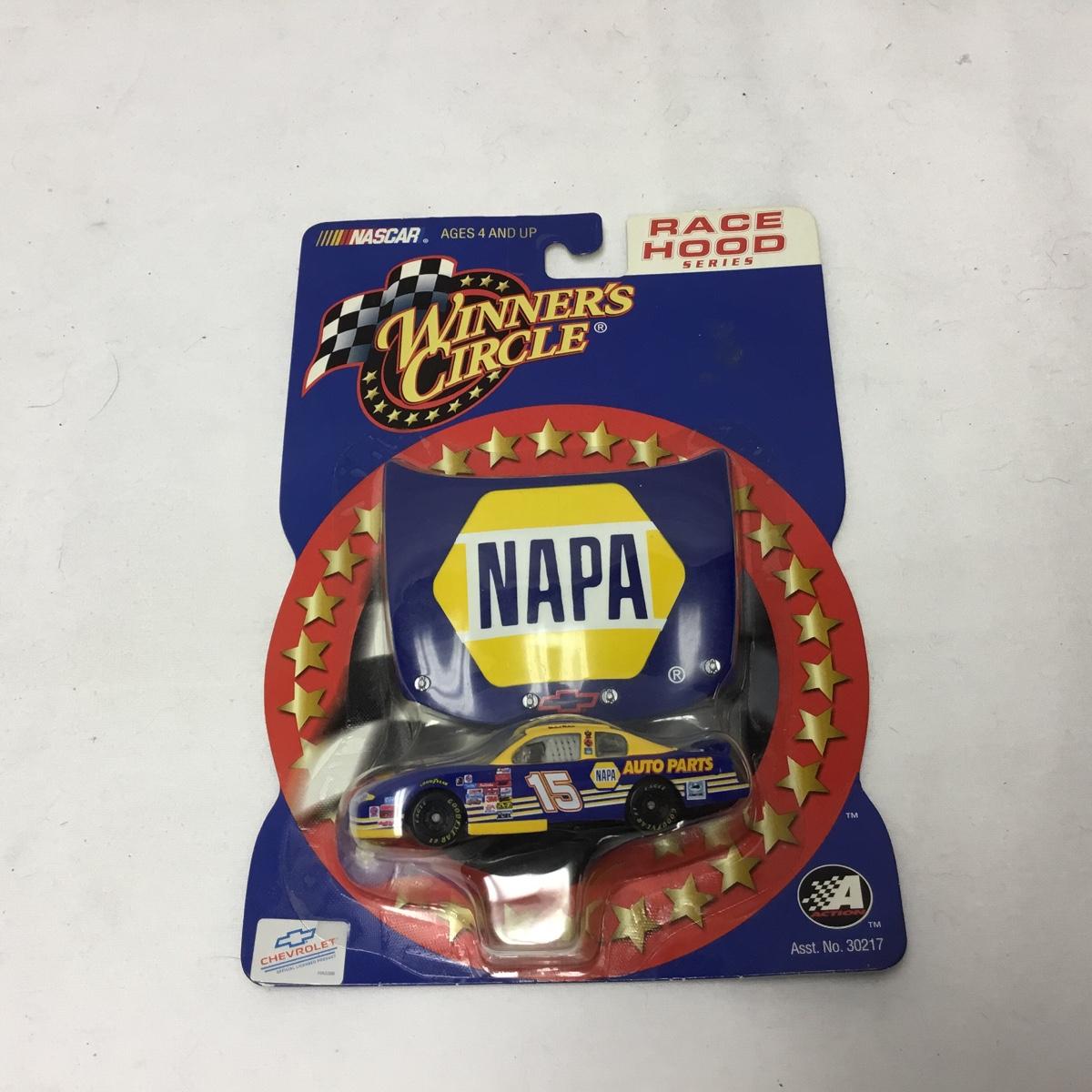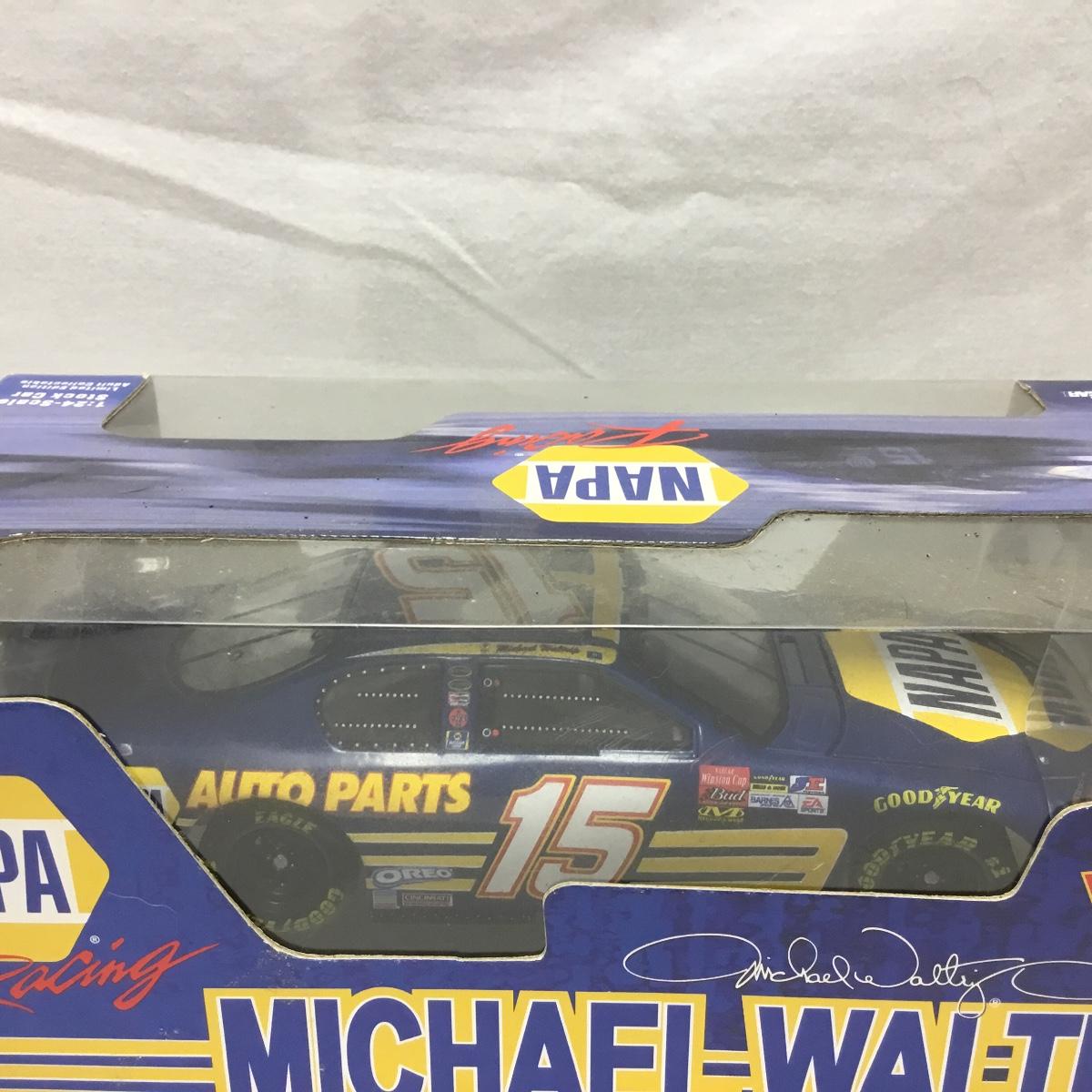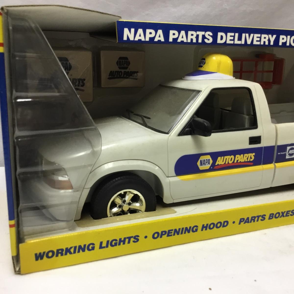 Lot includes eight packaged NAPA truck and race car figurines. Three Michael Waltrip 1:24-Scale stock car/race car included. See photos. 1967 Chevy Pickup as well as a small NASCAR Winners Circle race car included. 2005 parts delivery pick up truck, 2007 exclusive parts delivery pick up truck that is blue with flames on the side, and one large 2008 exclusive NAPA stamped steel funny car transporter. See photos for details and part numbers.