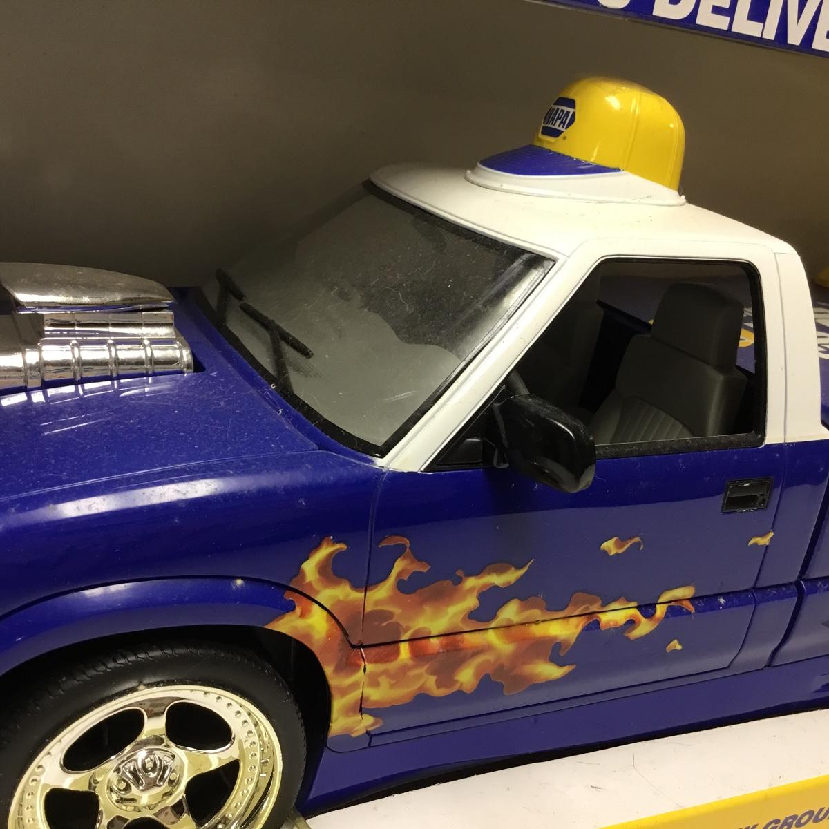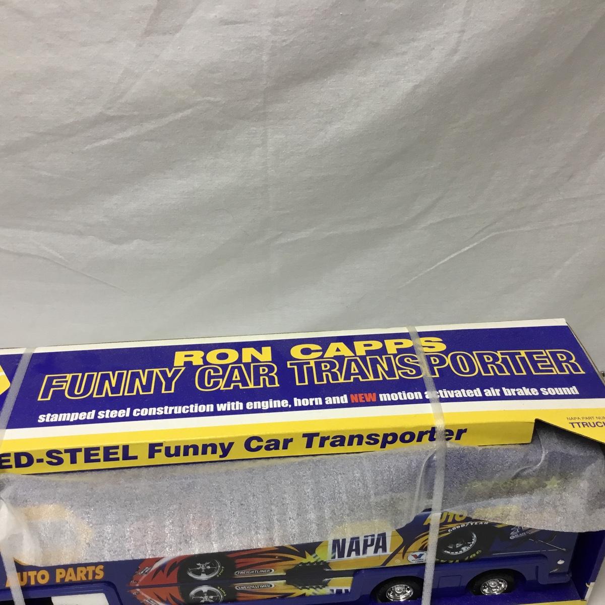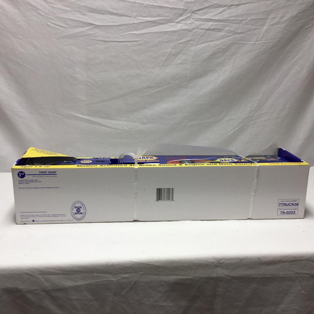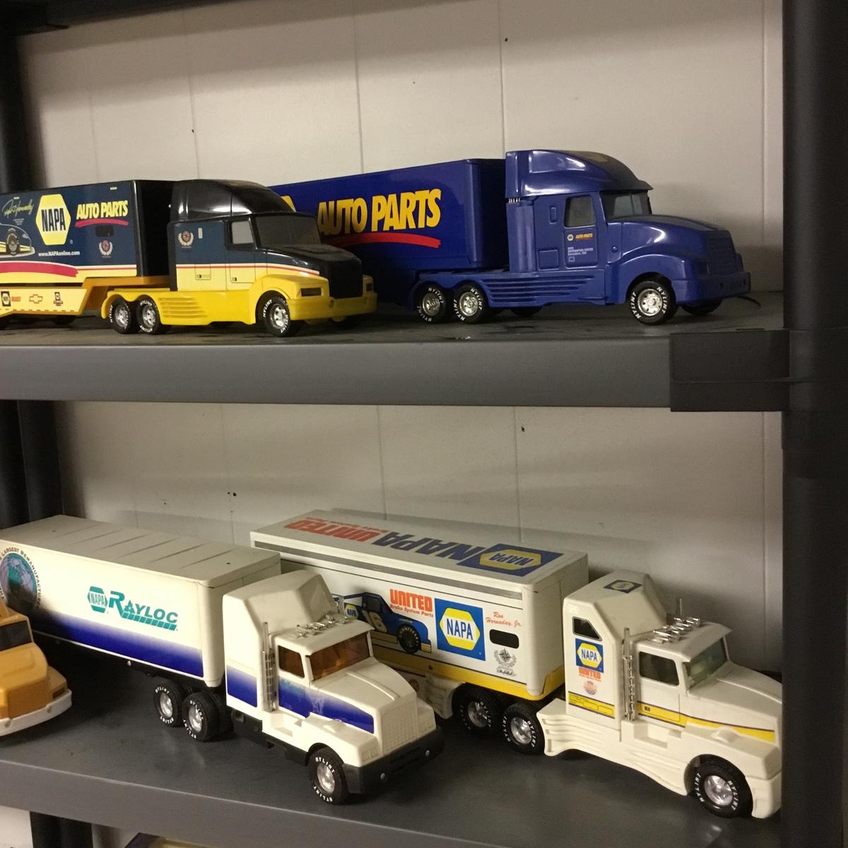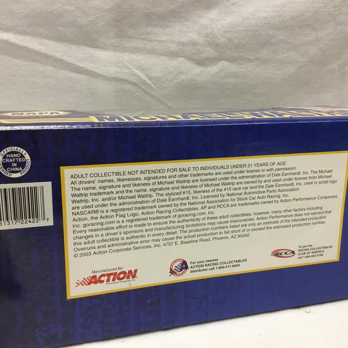 Lot includes eight packaged NAPA truck and race car figurines. Three Michael Waltrip 1:24-Scale stock car/race car included. See photos. 1967 Chevy Pickup as well as a small NASCAR Winners Circle race car included. 2005 parts delivery pick up truck, 2007 exclusive parts delivery pick up truck that is blue with flames on the side, and one large 2008 exclusive NAPA stamped steel funny car transporter. See photos for details and part numbers.