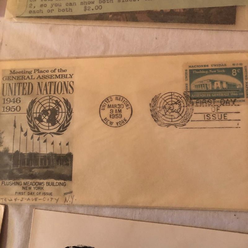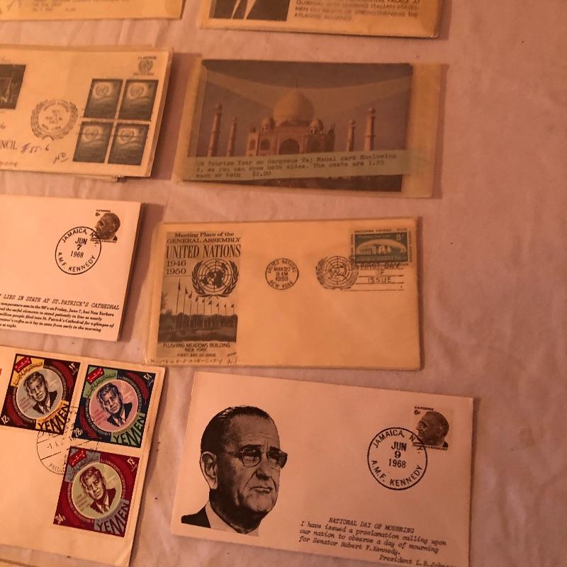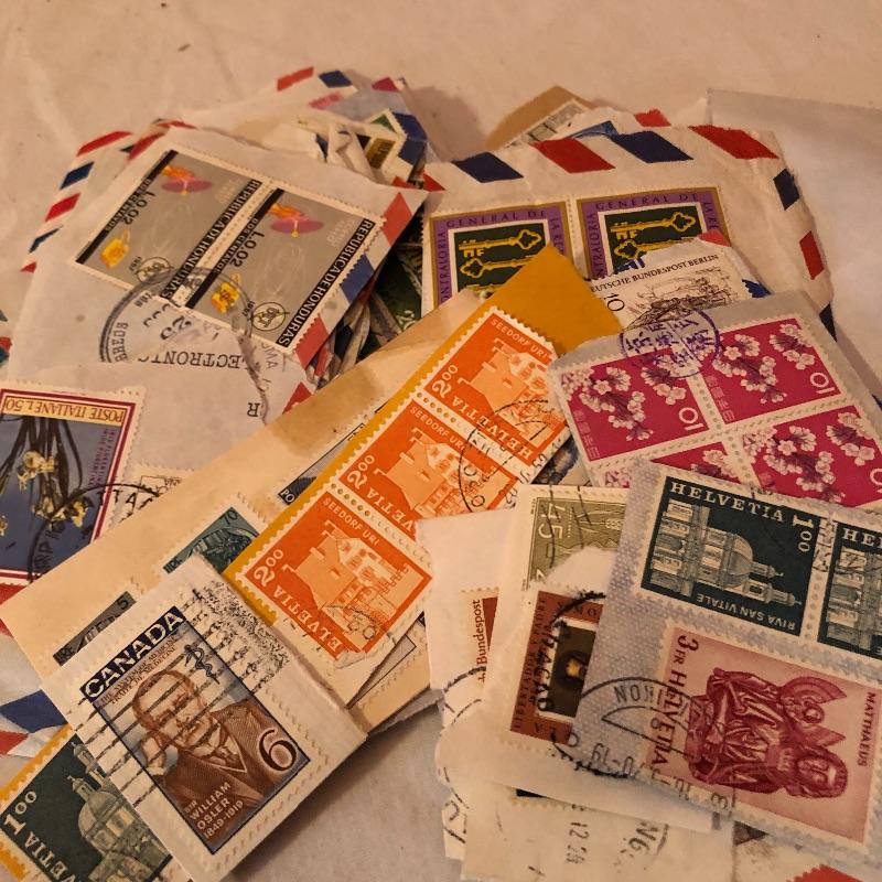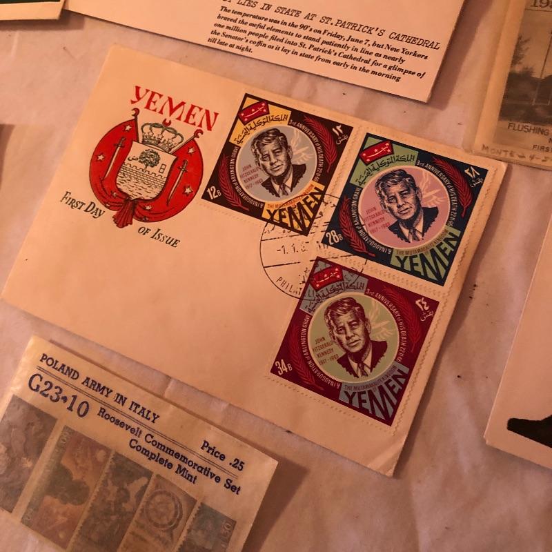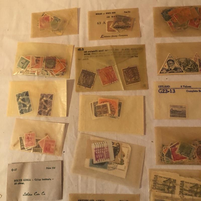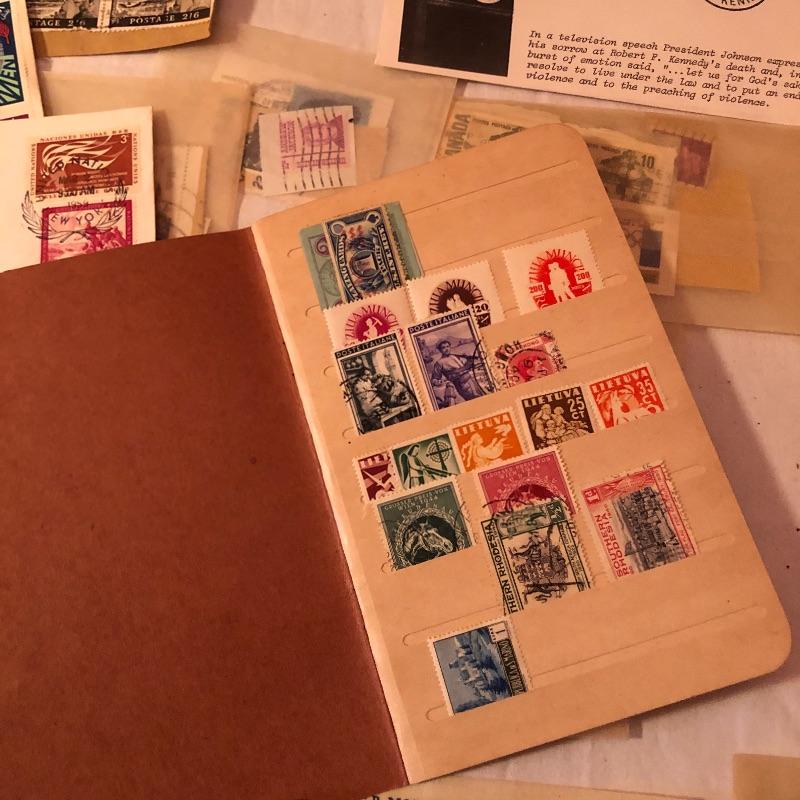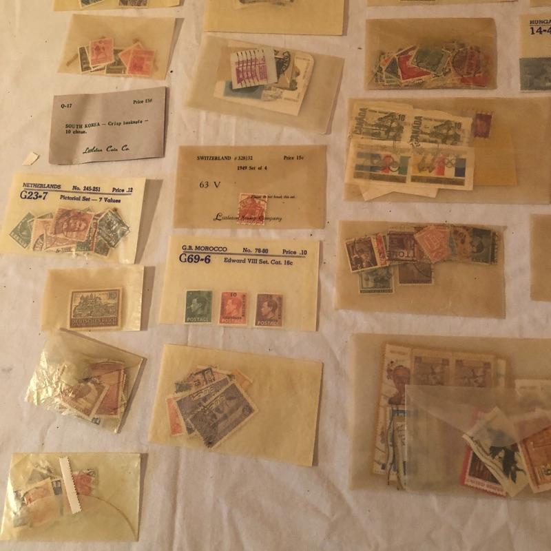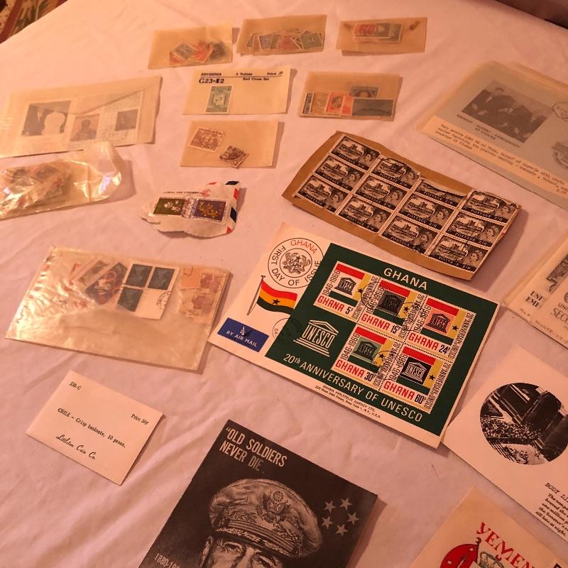 This lot contains too many stamps to photograph! This lot will certainly be attractive to any stamp collector or historian! Both stamp stock books are filled. Includes first day issues and US and international used stamps. Also includes a book and stamp collecting supplies. Shipping Available.