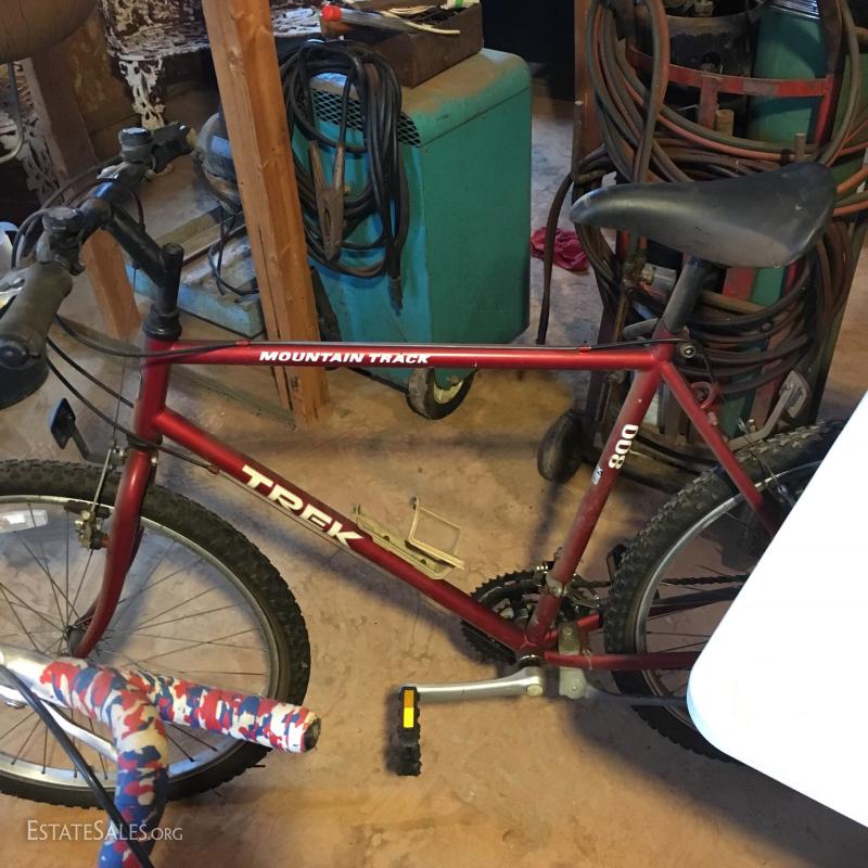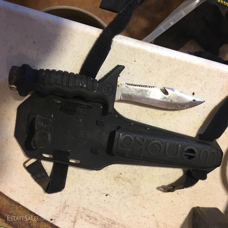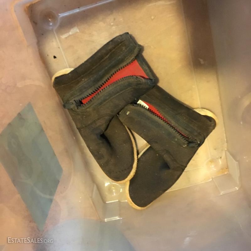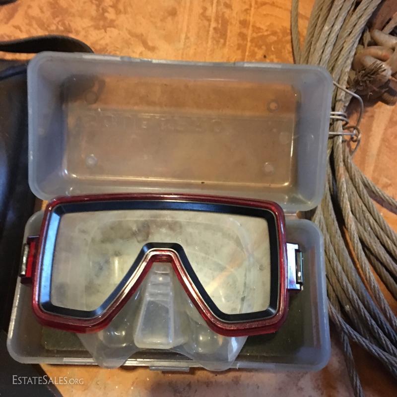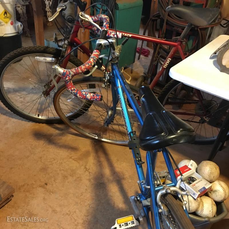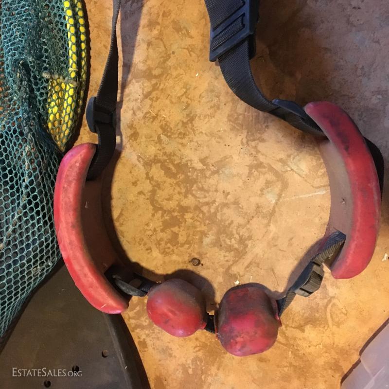 Step Pedometer, Bucket full of softballs, Scuba gear (Scuba Pro Sea Wing Fins XL, 6200 B Scuba Pro, Zeagle Jacket, Scuba Weight Belt, Penn Tennis balls, Racket balls, Wenoka Diving knife, Z-Grip Soles Size XL 11-13, and 2 Bikes Bridgestone and Trek.