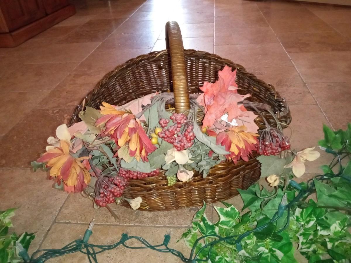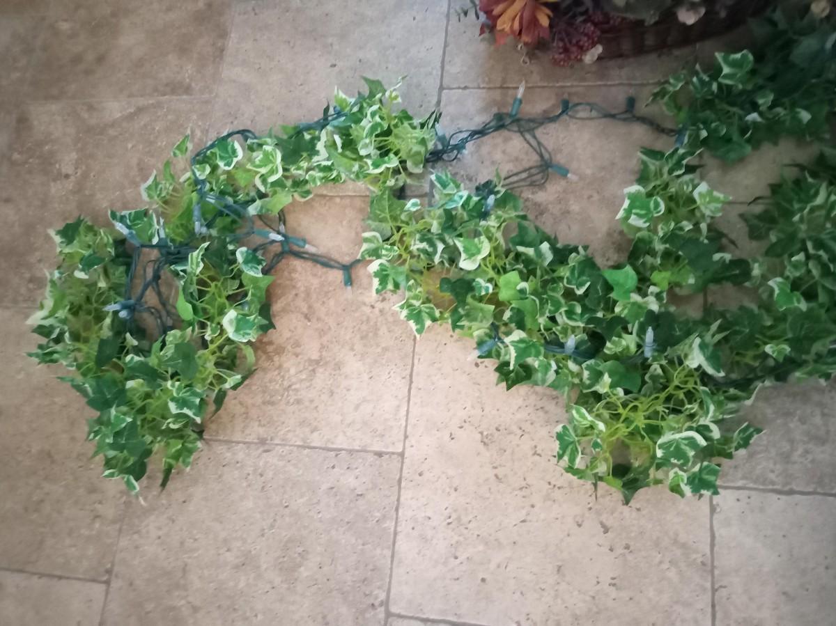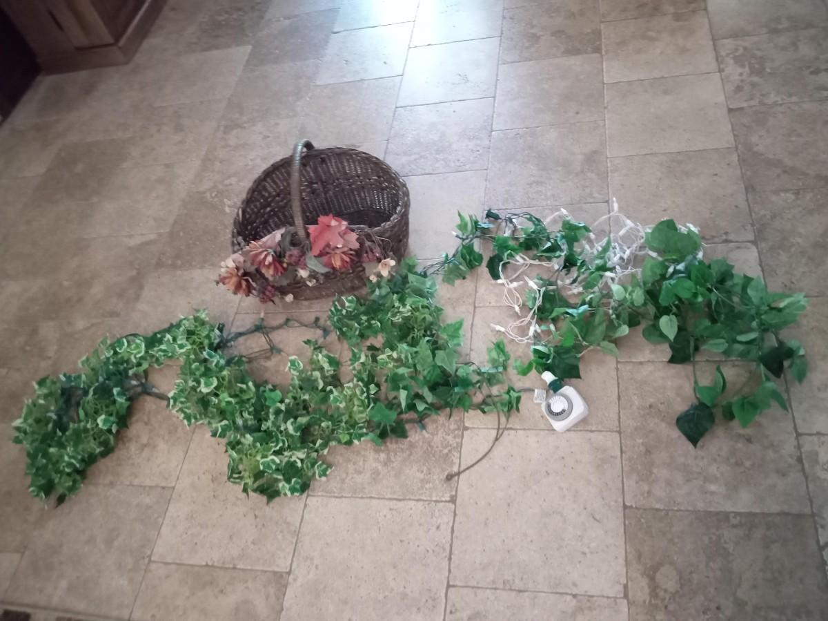 LOT 211  SEVERAL STRANDS OF FAUX LIGHTED VINES AND A WICKER BASKET