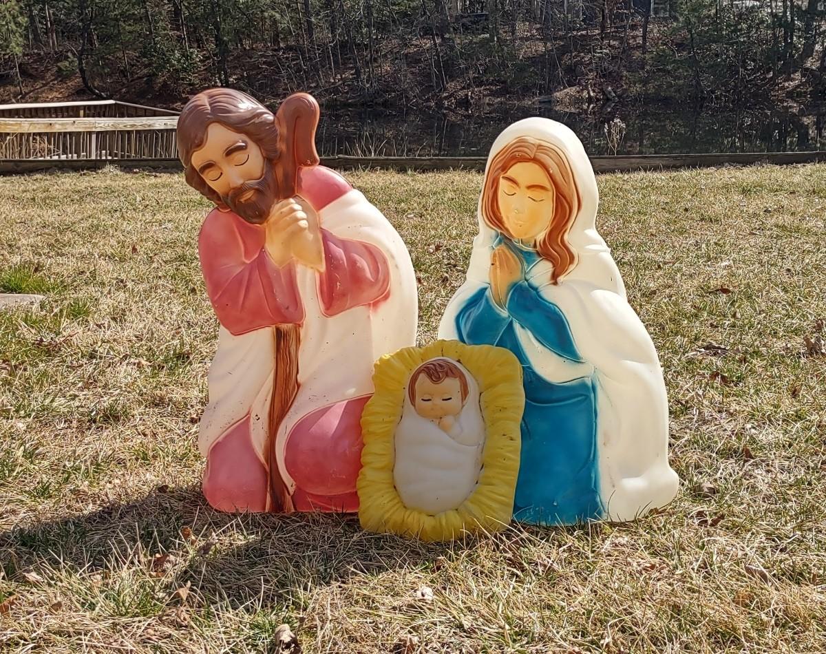 Baby Jesus 12x10", Joseph 13x28", & Mary 16x26" Blow Molds. NOT Tested.