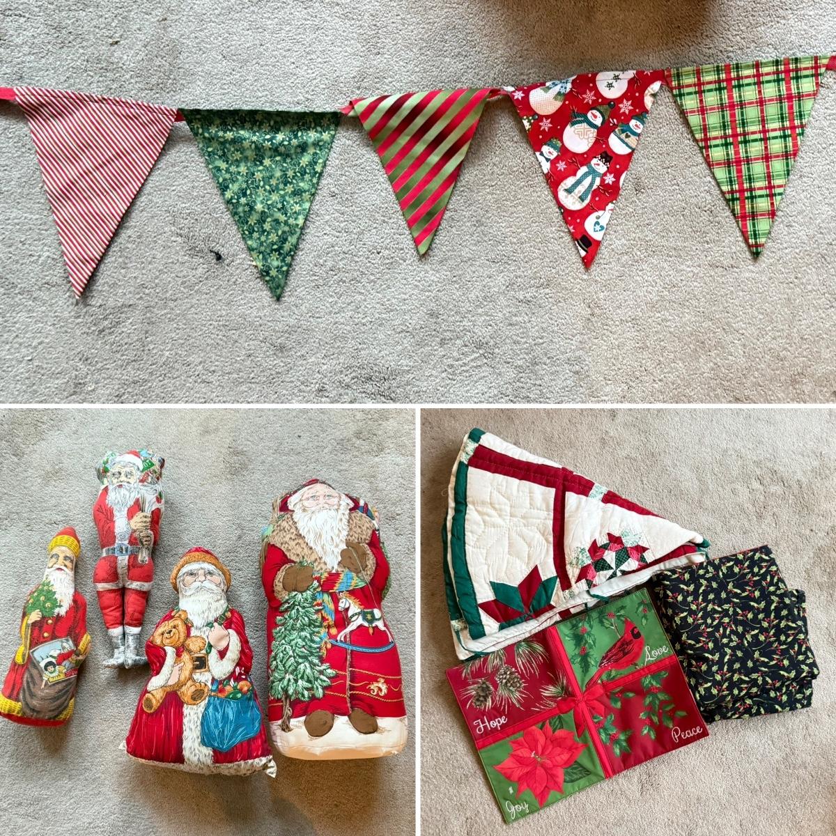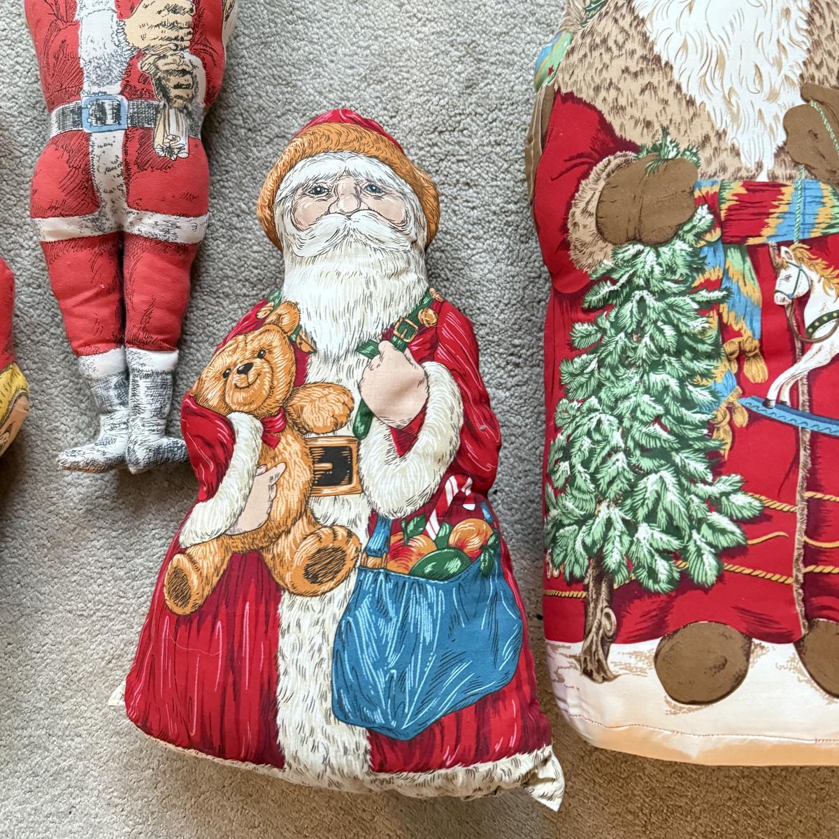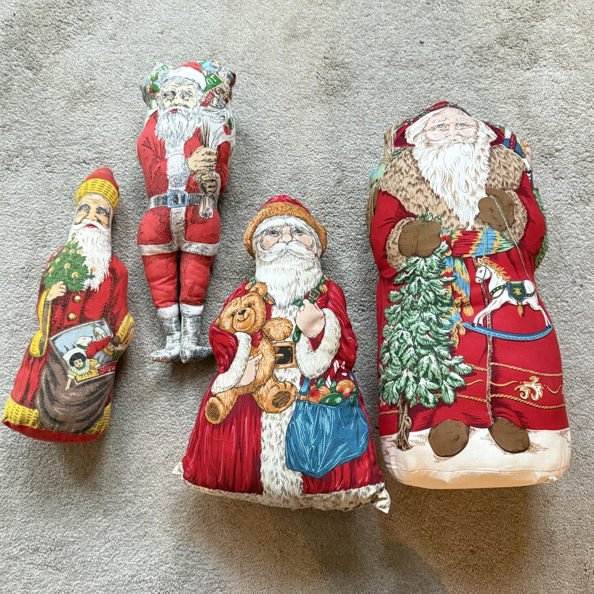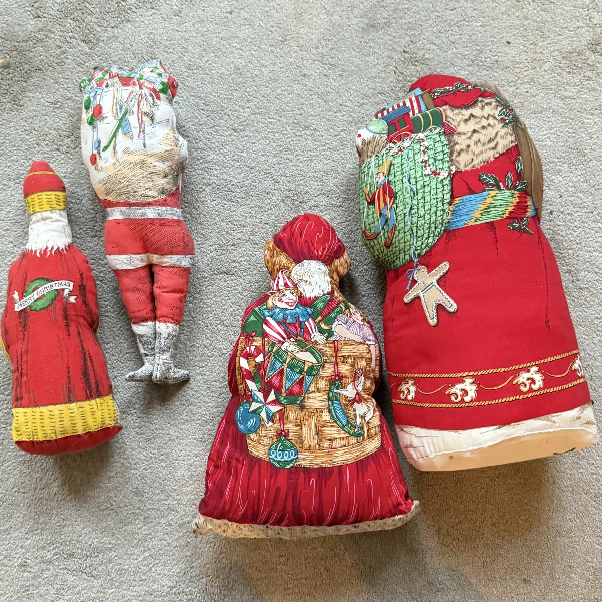 LOT 211L: Soft Vintage Santa Doorstops, Quilted Tree Skirt & More