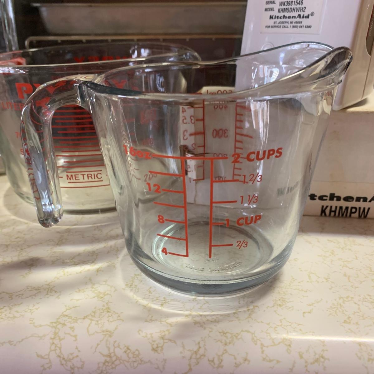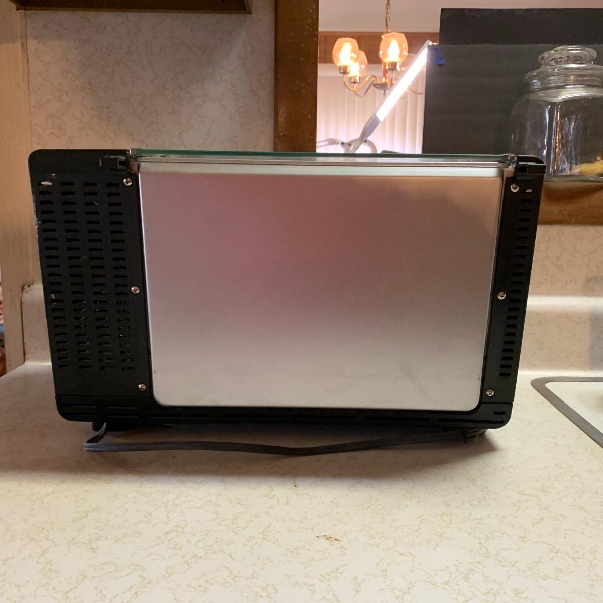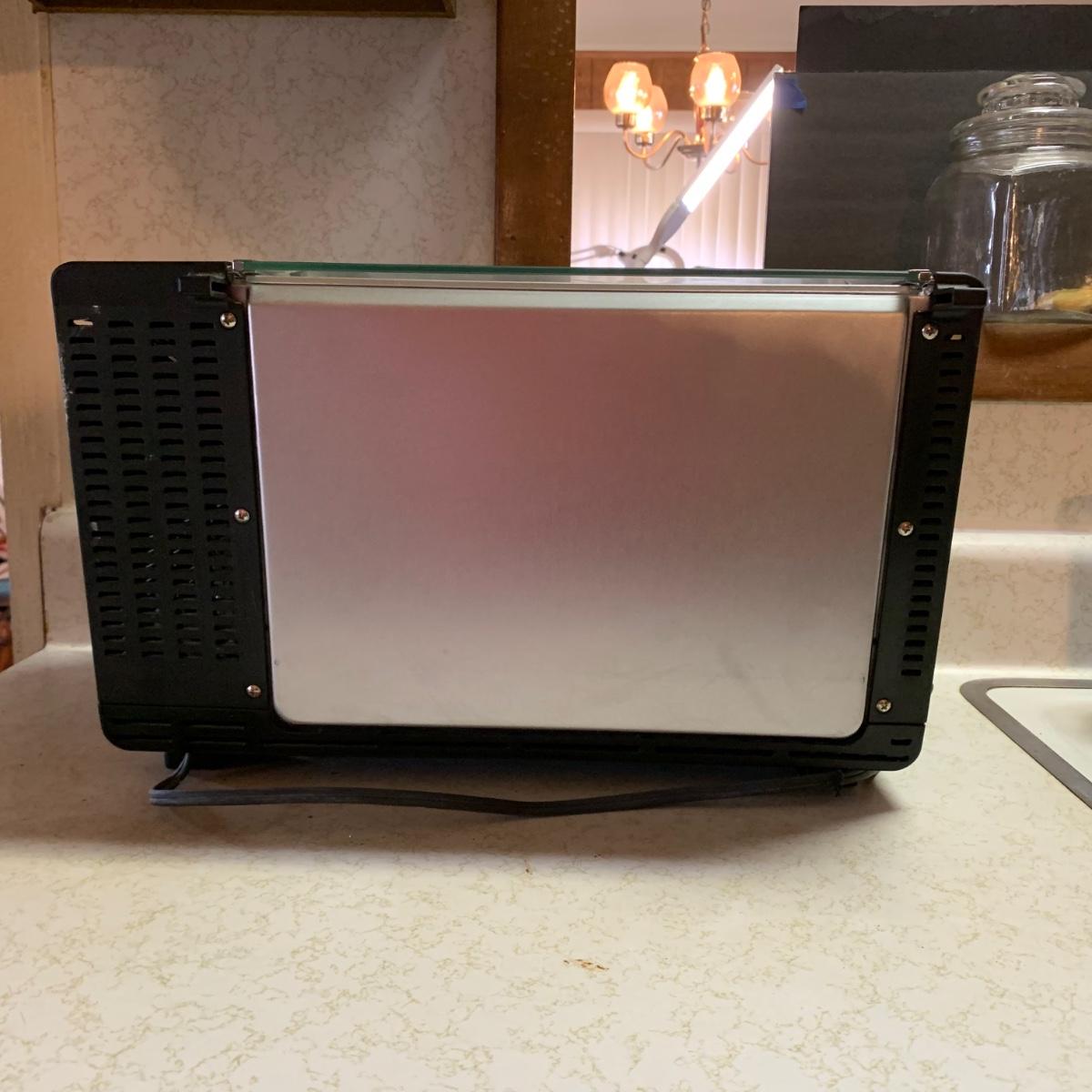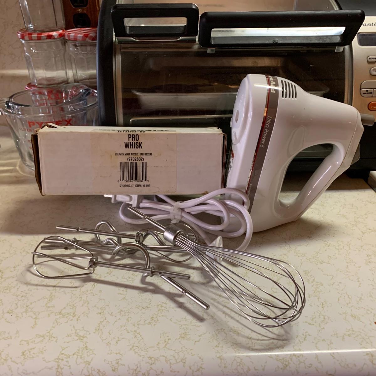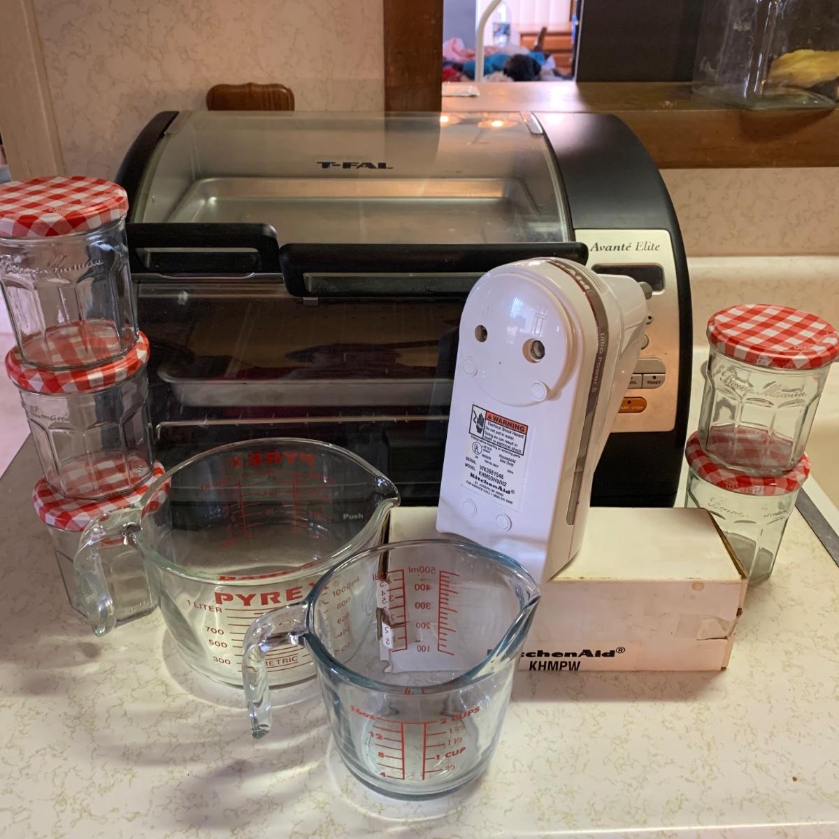 Includes toaster oven, hand mixer, attachments, two Pyrex measuring cups and five jam jars.