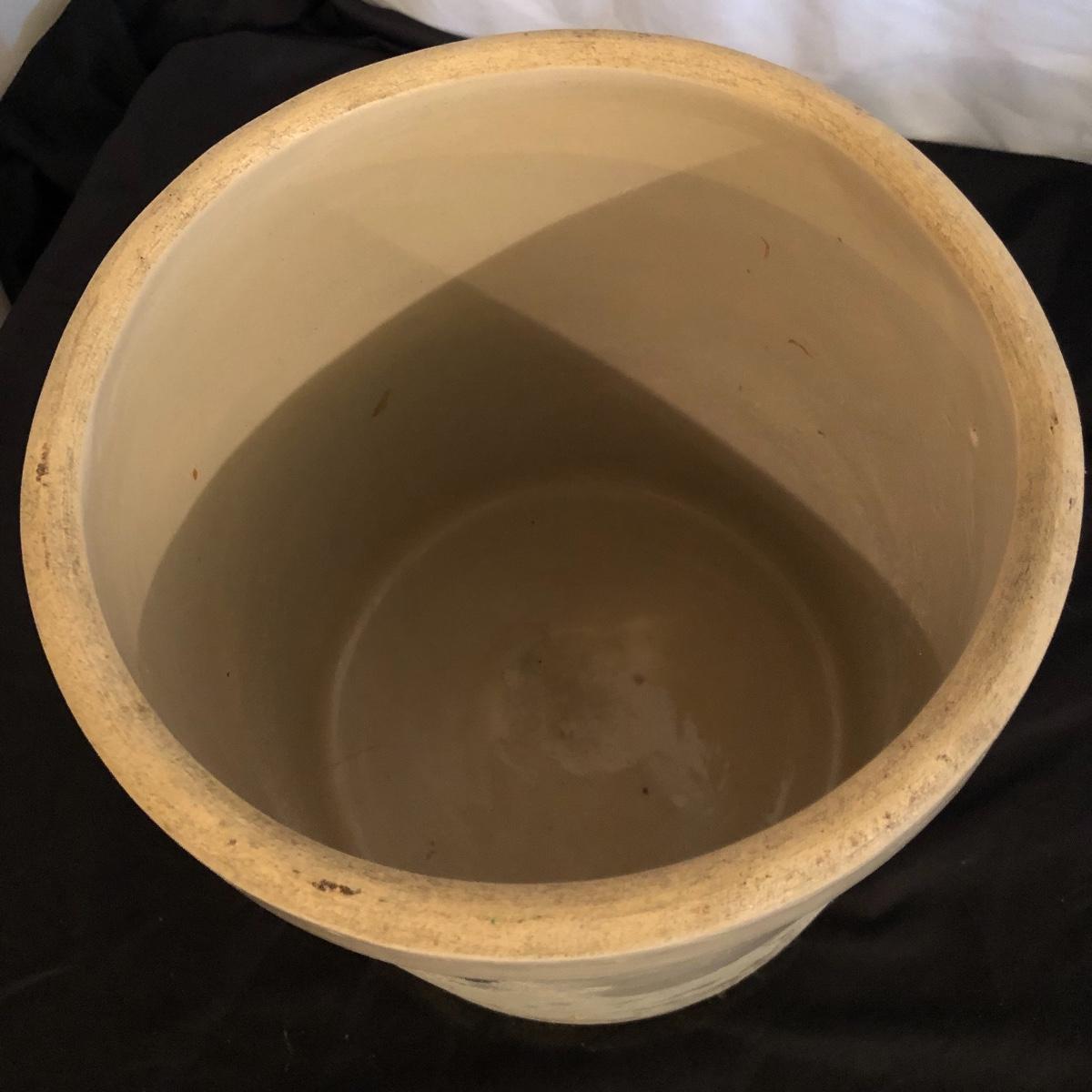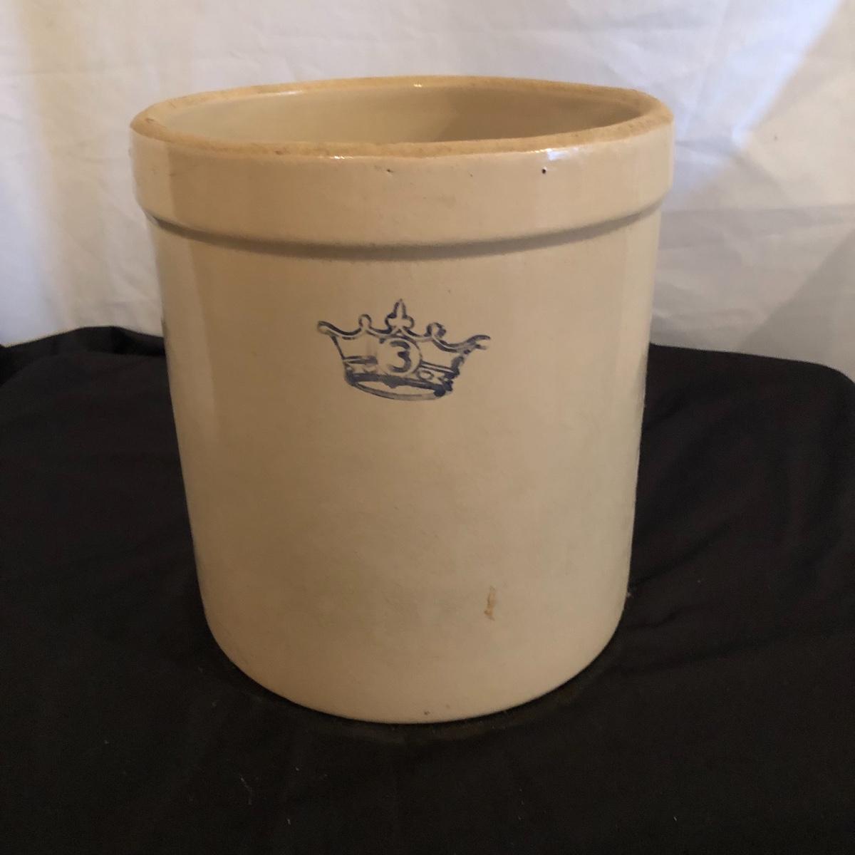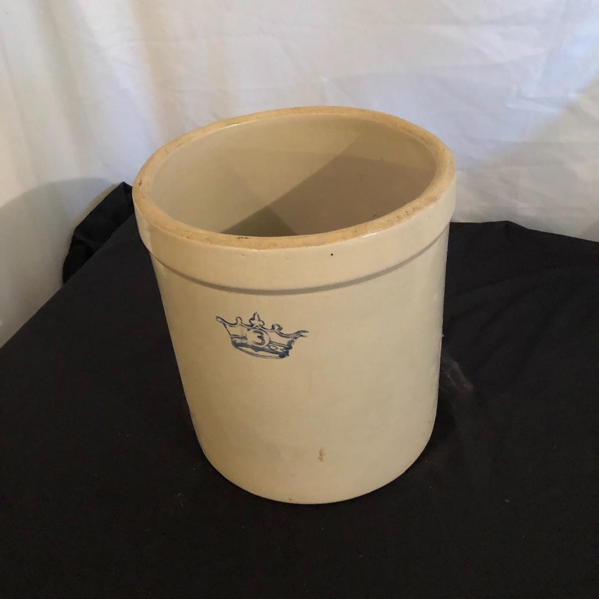 Enjoy this beautiful #3 stoneware crock. This classic ceramic item measures 10.5” in diameter and is 11.5” tall. There is a faint crack at the bottom of the crock (see picture). Local pick up only.