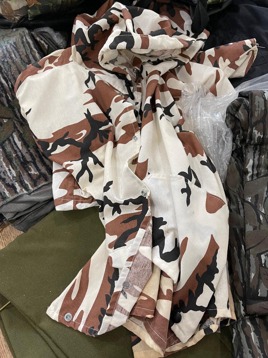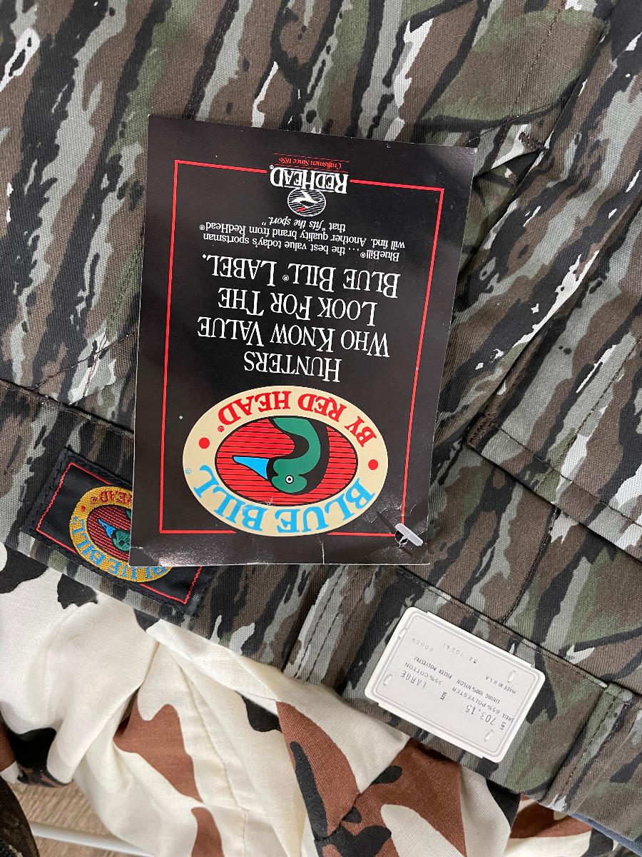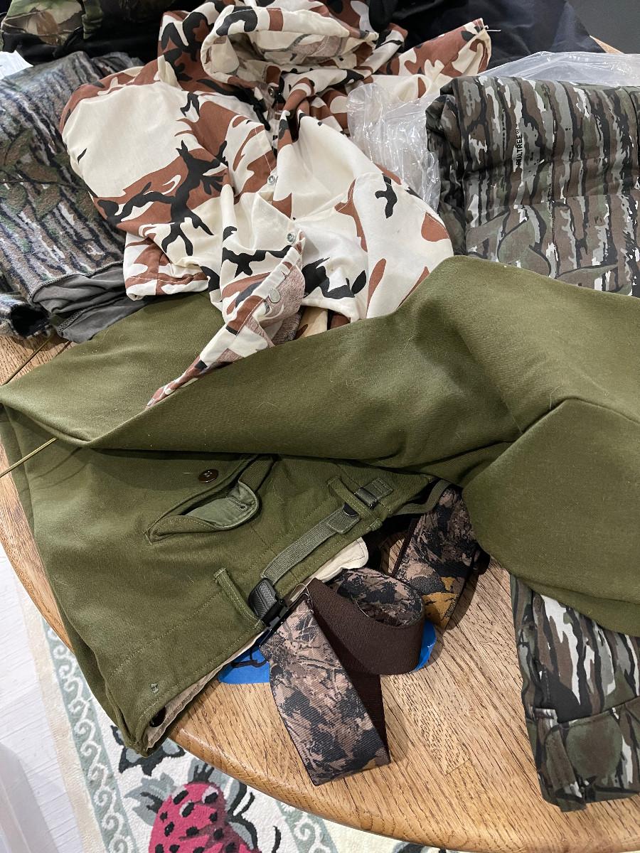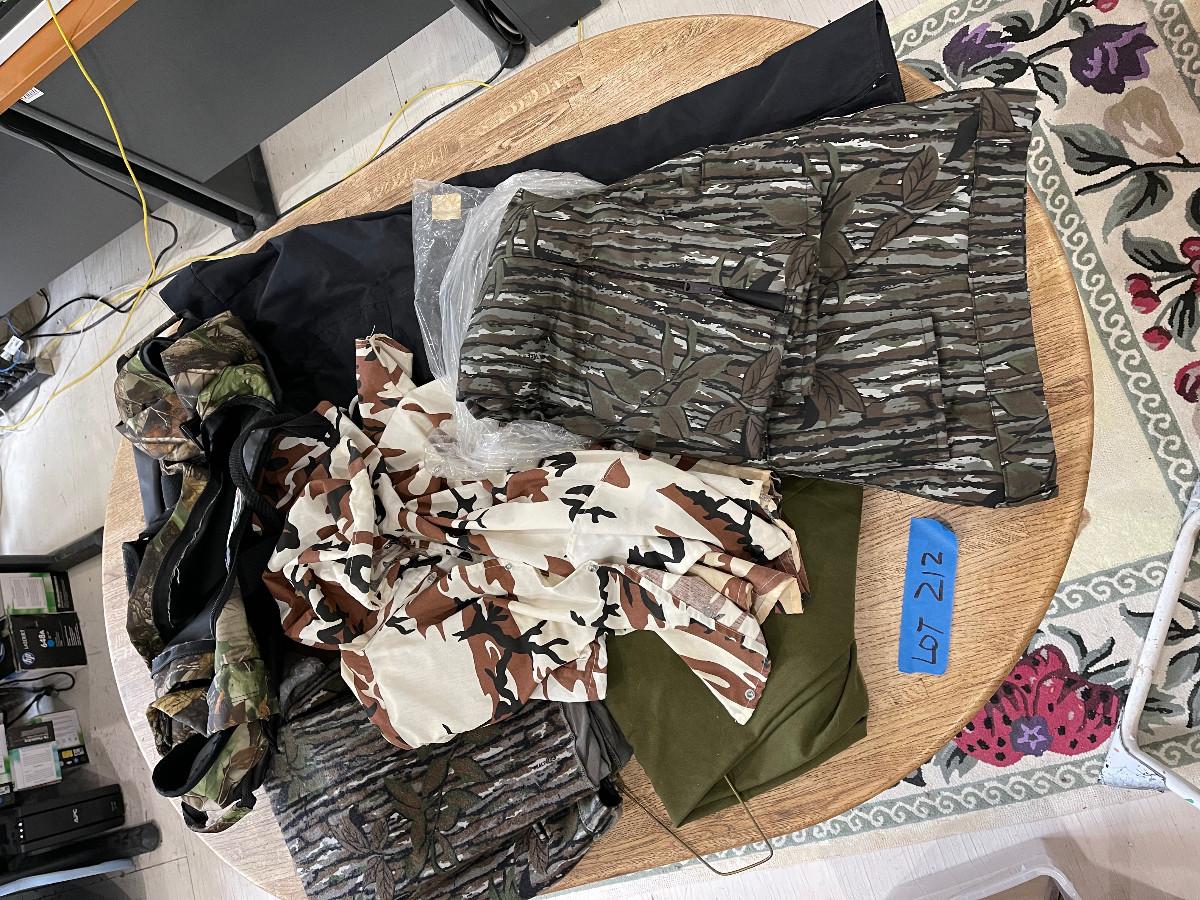 Hunting Lot Includes New Real Tree Blue Bill Insulated Hunting Pant (size Large), Read Head Hunting Bag, Fera Black Hunting Pants (size 38), Green Hunting Pants (size Large), Insulated Wool Camo Pants by Cabela's Gore-tex (size 38)