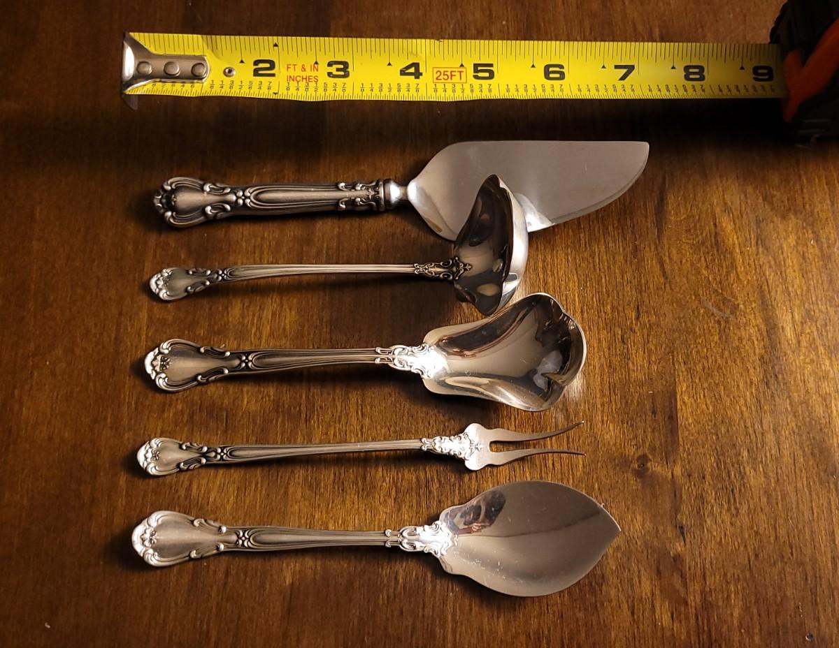 This lot features (5) Vintage GORHAM Sterling Silver Flatware Accessories. The blade portion of the pie server is of course Stainless steel unlike the Sterling Handle. All 5 weigh around 161 Grams total.