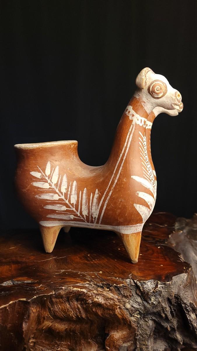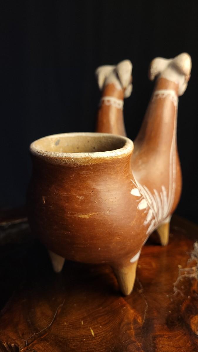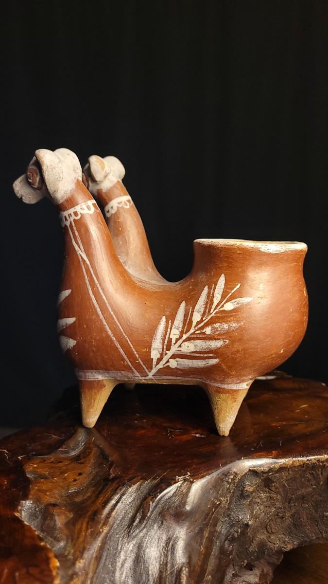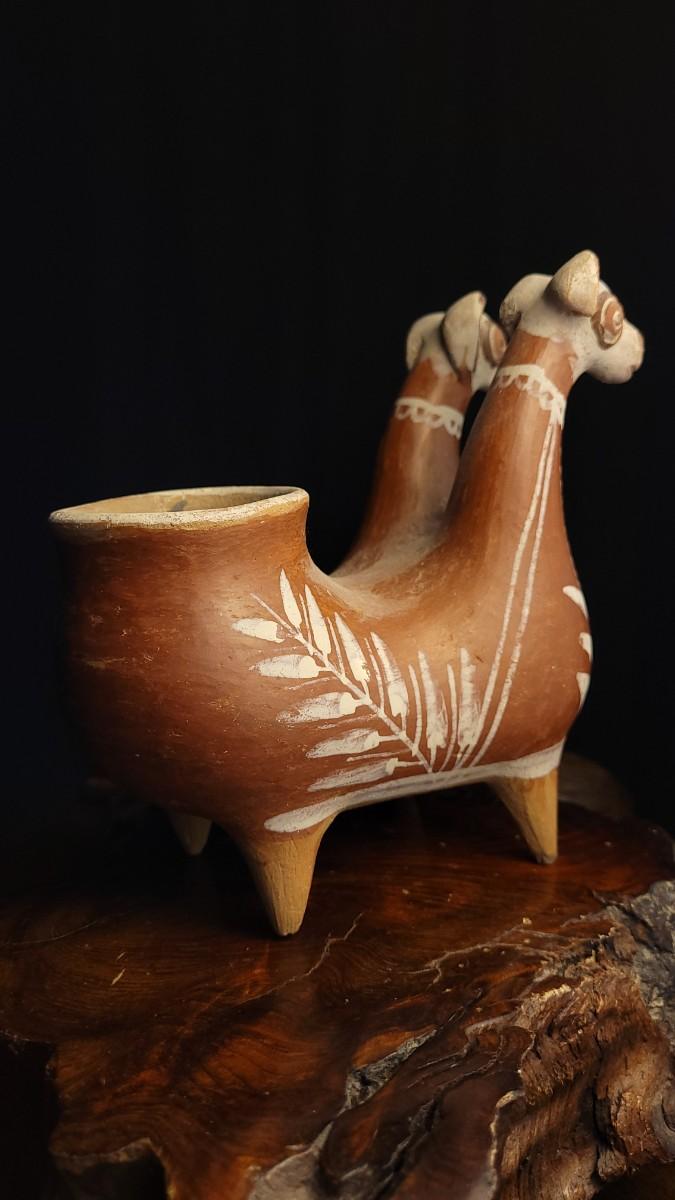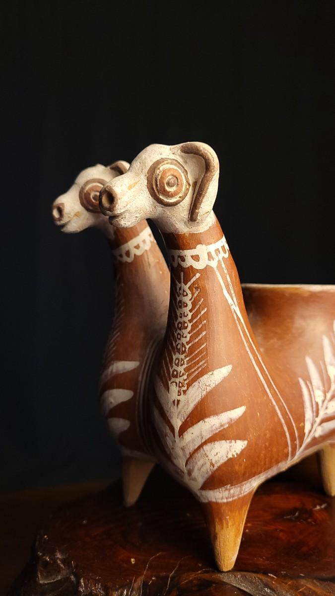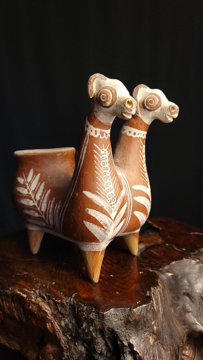 Lot 212: Vintage Peruvian Two Headed Lllama Pottery Vessel