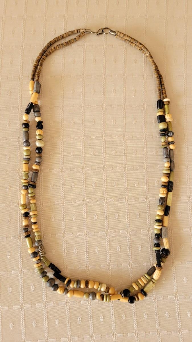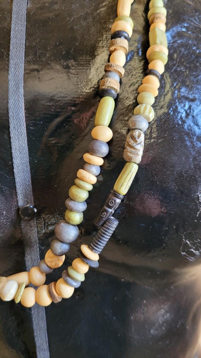 Lot 212:  Vintage African Heishi and Carved Bead Necklace