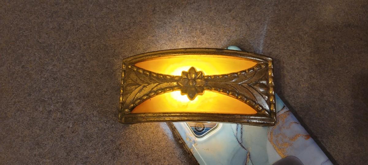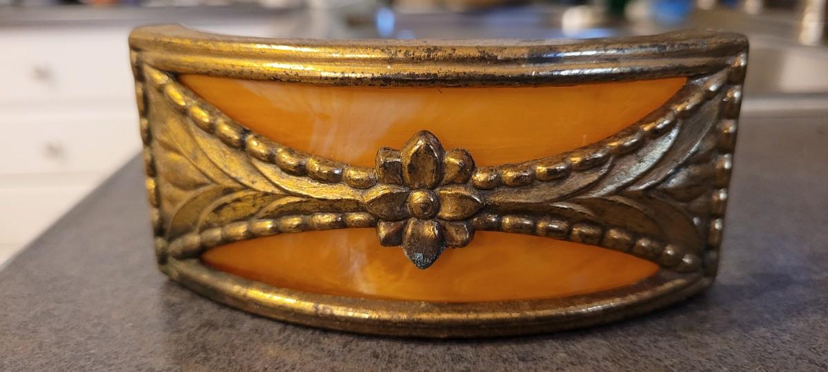 Very nice condition light lamp shade pane with Ornate metal outer accent.