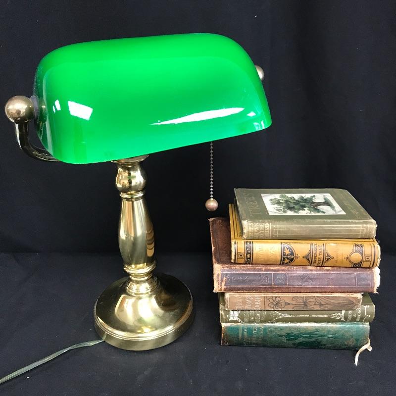 Lot 212 - Banker”s Lamp and Antique Books