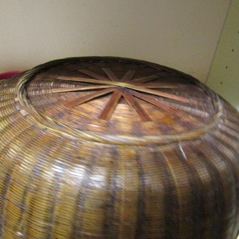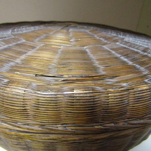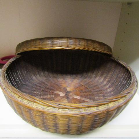 WICKER BASKET WITH LID HAS SOME DAMAGE TO LID (SEE PIC)