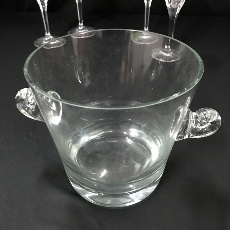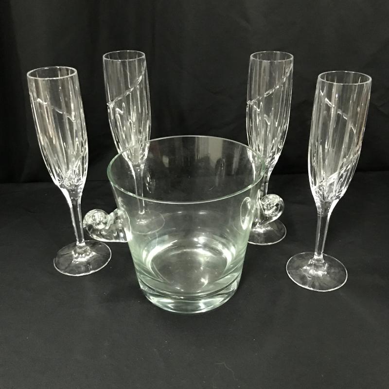 Four-glass champagne set with Tiffany & Co. ice bucket, measuring approx. 6” tall. Shipping available or local pickup in Asheville, NC.