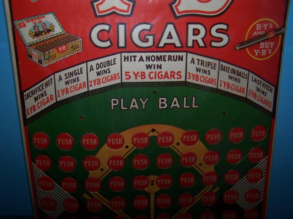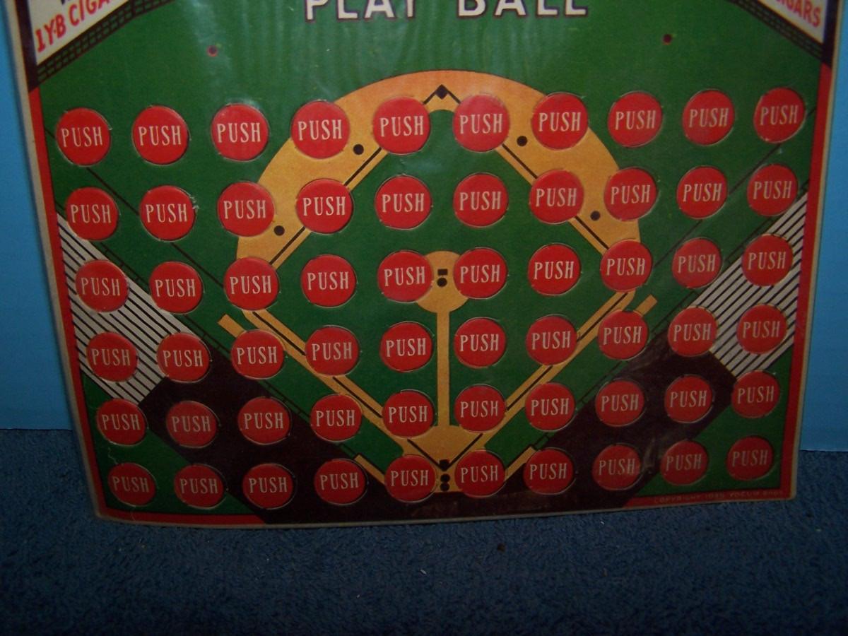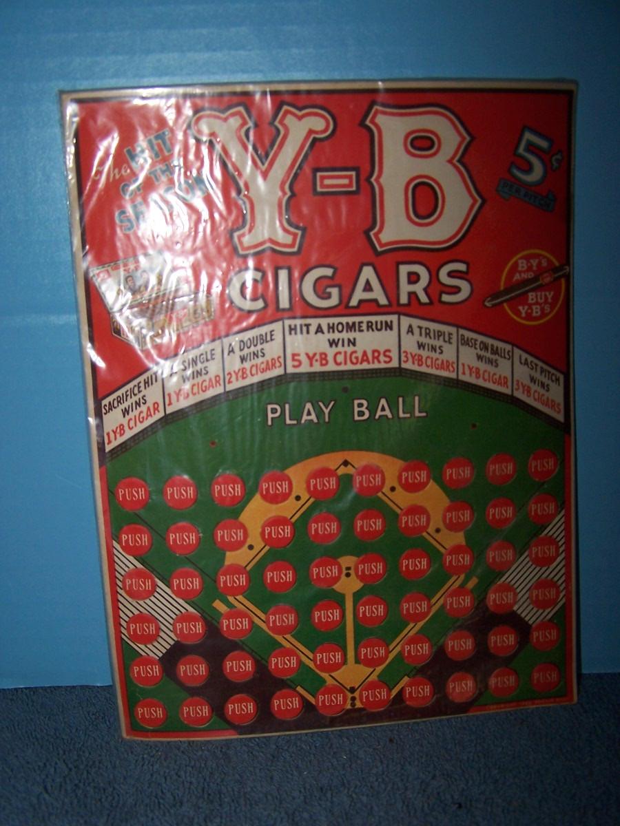 LOT 212 GREAT VINTAGE Y-B CIGARS 1938 BASEBALL PUNCH CARD/BOARD