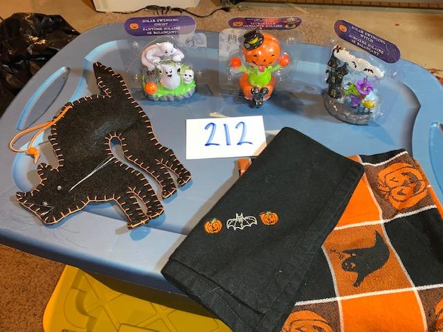 3 solar items, black cat lights up and makes sounds, kitchen towels