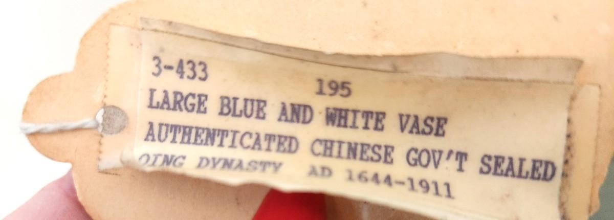 Lot #212 Large Blue/White Antique Chinese Vase - Qing Dynasty 1644-1911