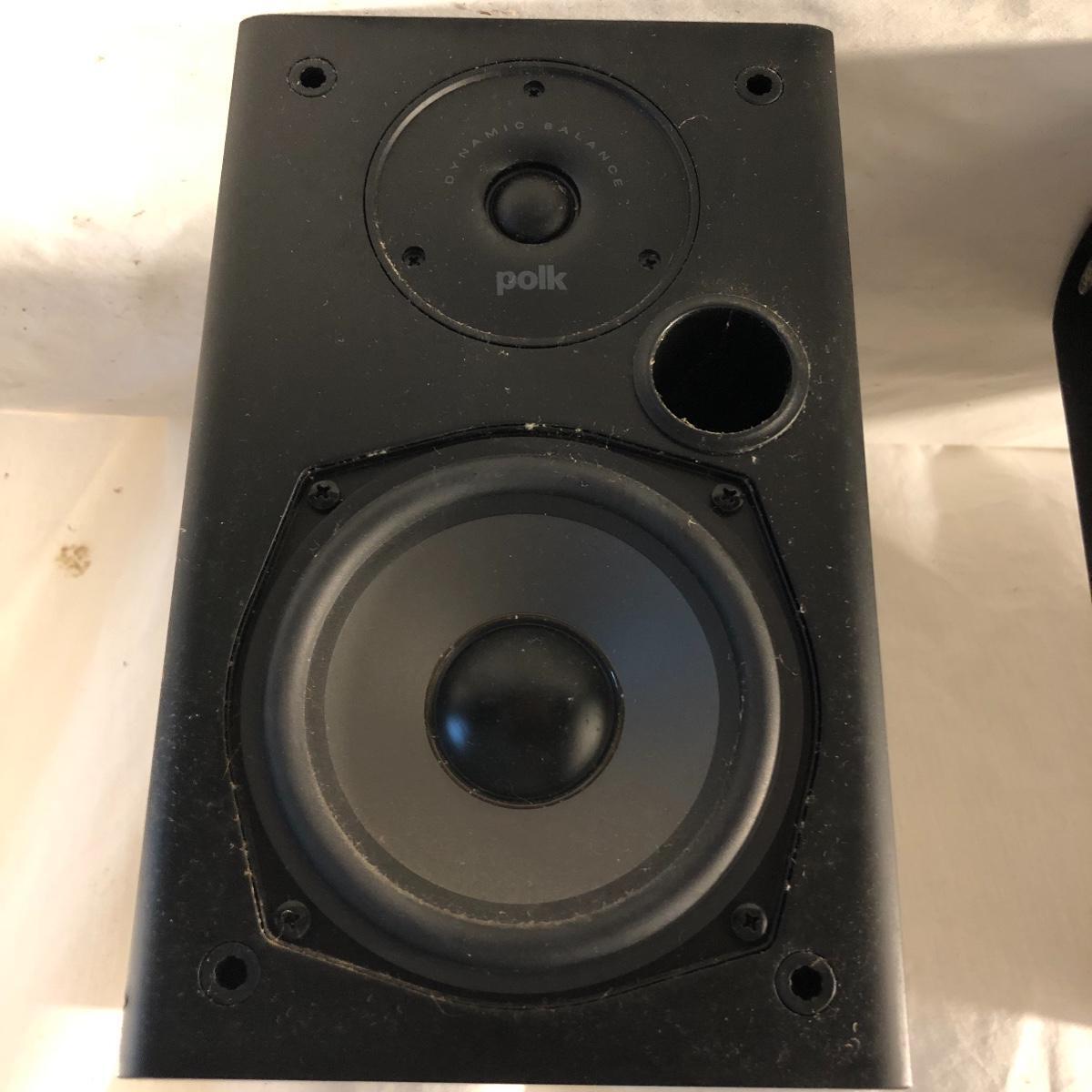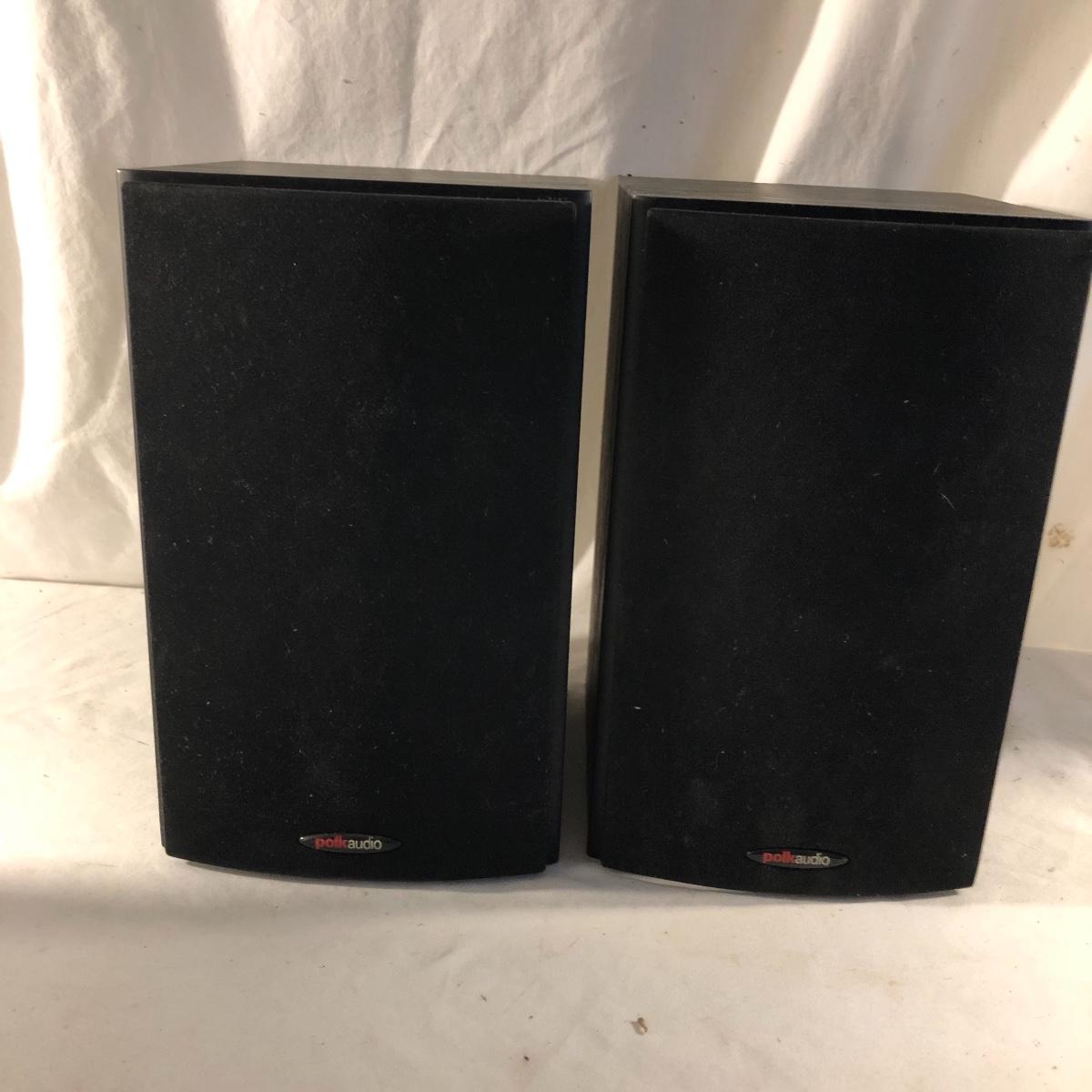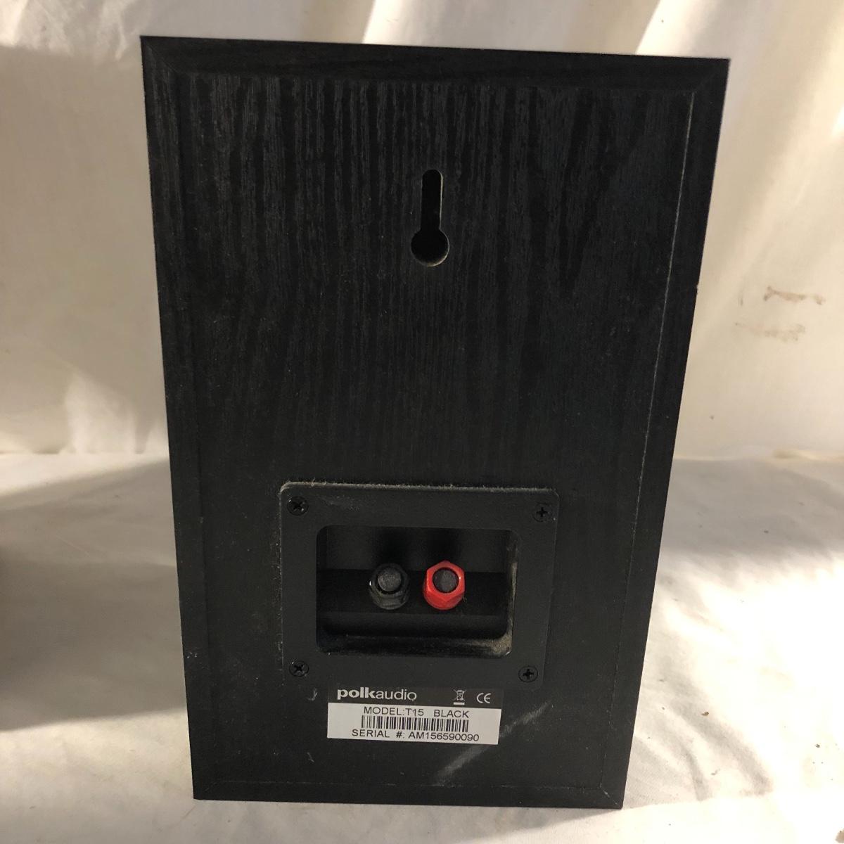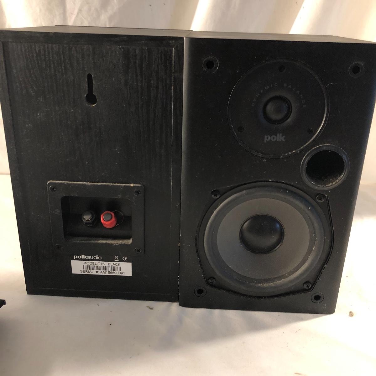 Get your jam on with this pair of Polk Audio model T15 bookshelf speakers. Speakers measure 6.5” x 6.5” x 11”.