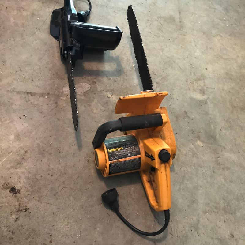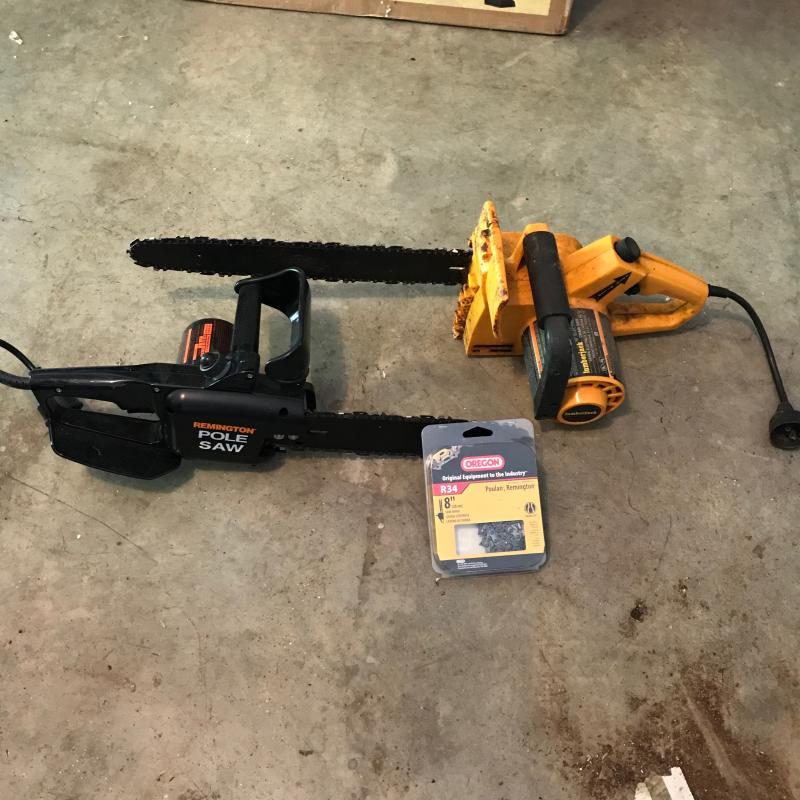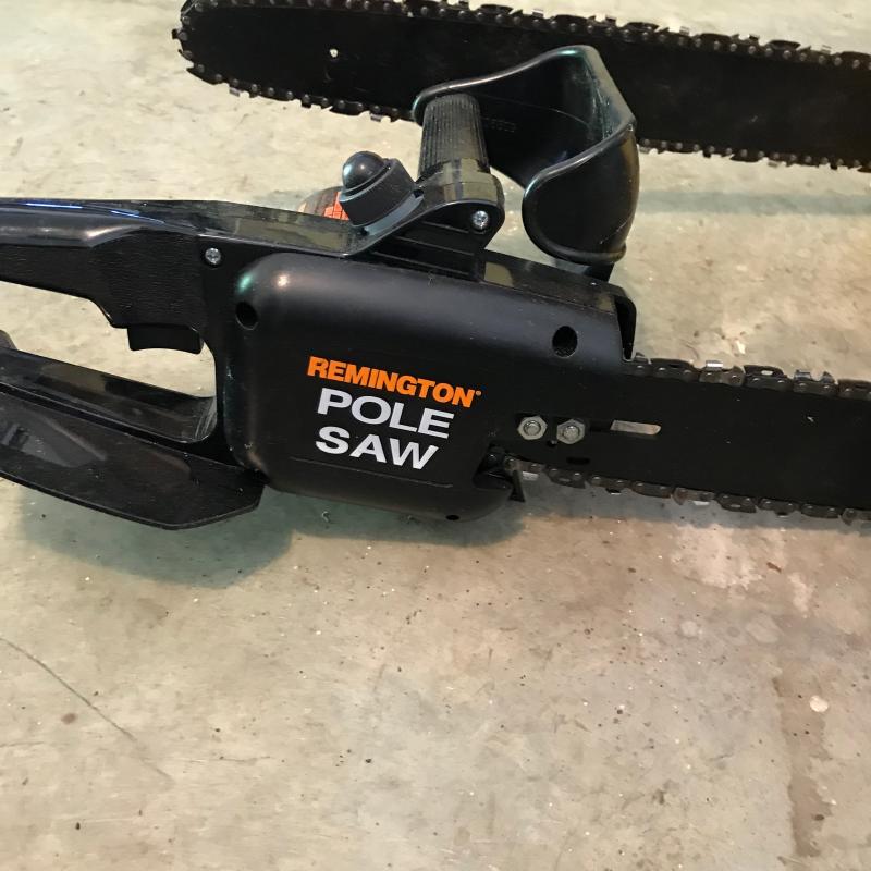Two electric chainsaws. One Remington Pole Saw. Also includes extra saw chain. Looks pretty new. The other chainsaw is by LumberJack. Worked when plugged in. No shipping. Local pick up only.