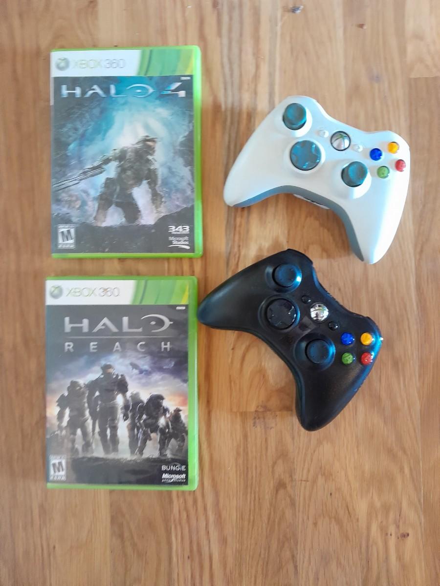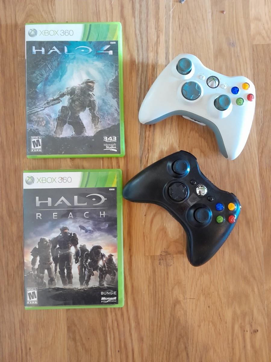 LOT 212 TWO HALO X-BOX GAMES WITH TWO CONTROLLERS (HU)