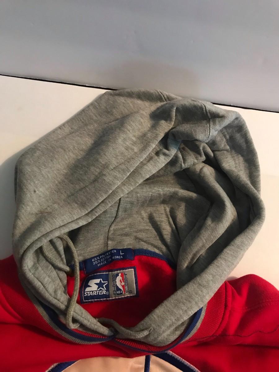 Vintage Philadelphia 76ers basketball outerwear lot includes Swingster brand satin button-up jacket - size Medium and a pullover hooded Starter brand sweatshirt - size Large. Both items are in used condition with some staining, discoloration and wear. See photos. The pictures show condition, measurements if taken, and what is included in the lot. Due to the large amount that we photograph and the time frame, we are not always able to take measurements. All items unless noted, are pre-owned and have been used. If you purchased furniture, you must bring help. We do not allow one person to carry large furniture out on their own. Bring help, tools and a truck for the safety of our client’s homes, and your personal safety. Company policy. Thank you.