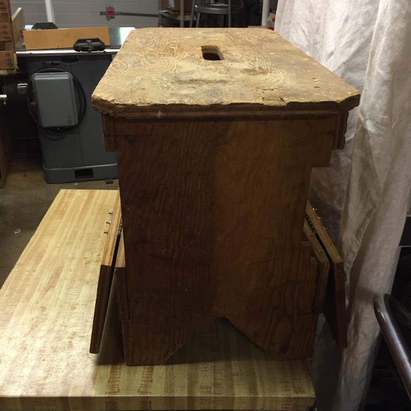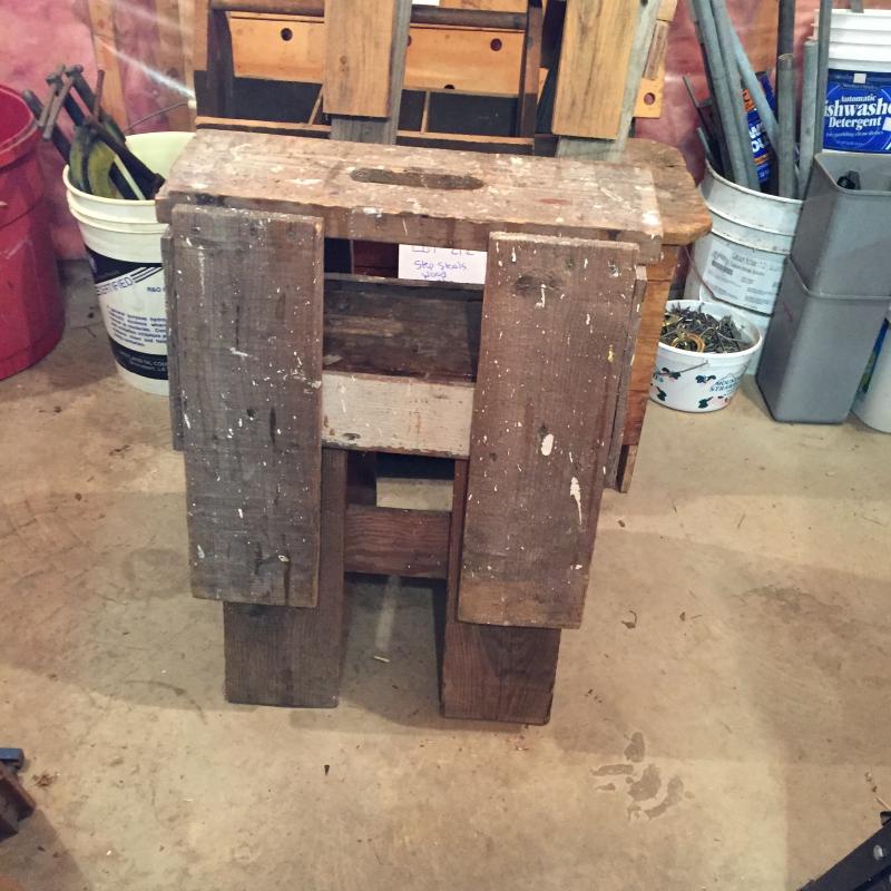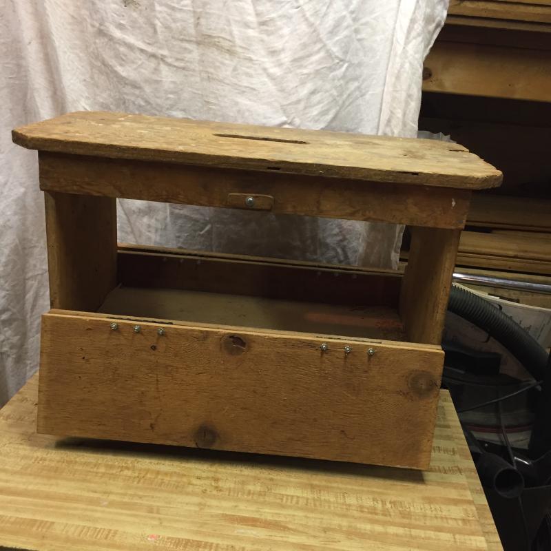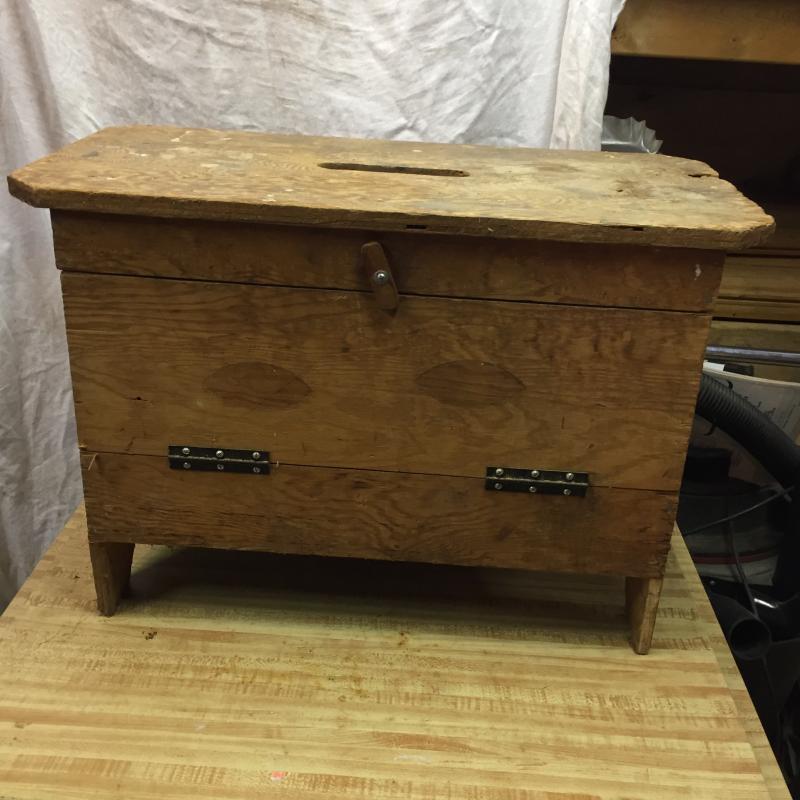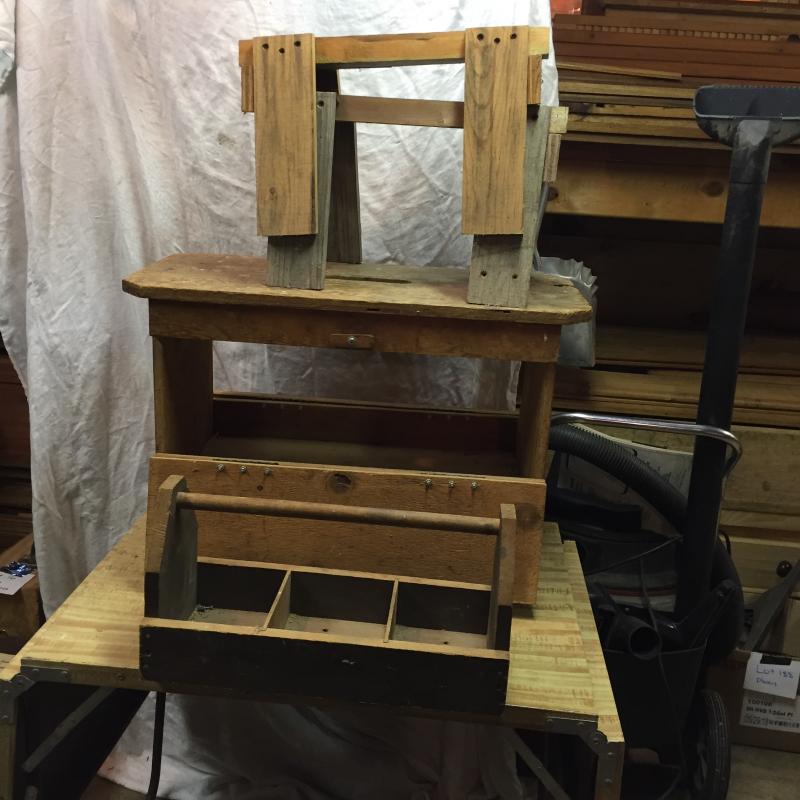 Wooden Box, stool and low Sawhorses.Box Measures 24” x 18”.
