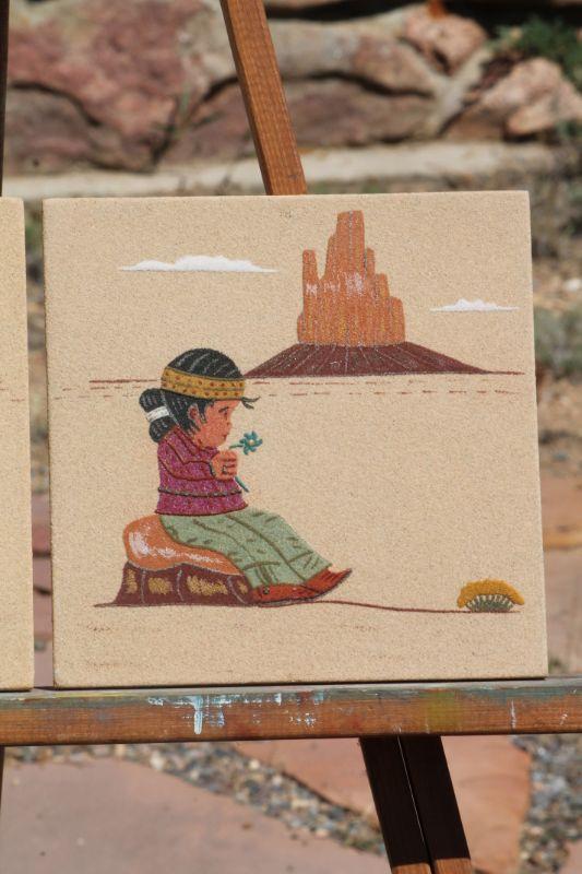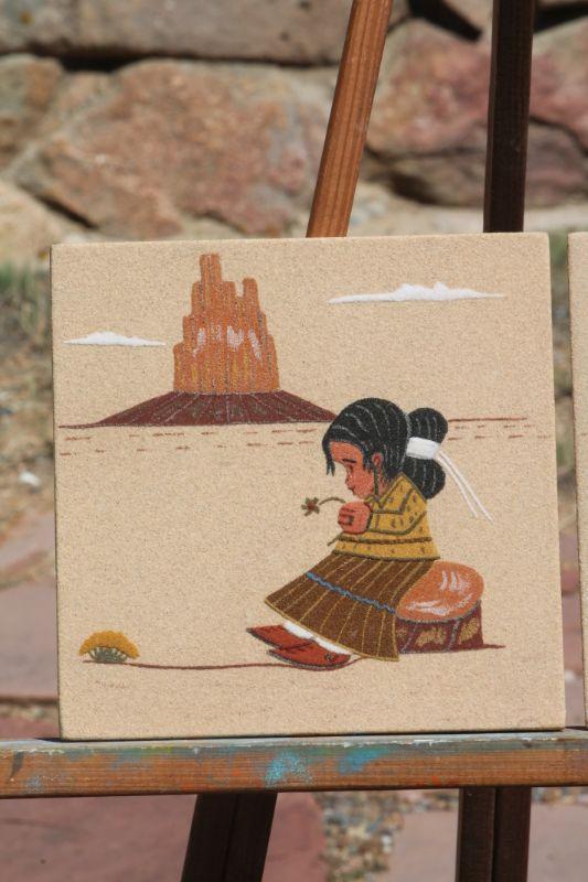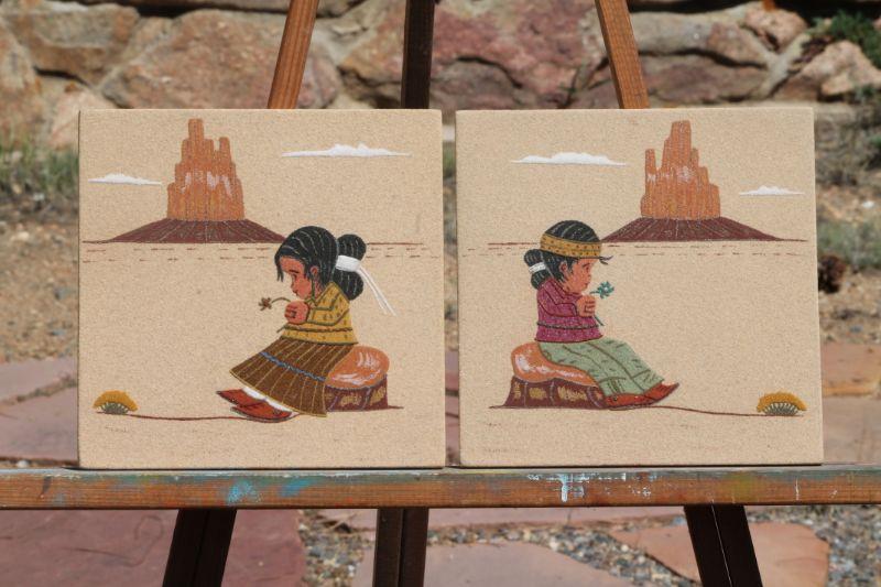 Lot 2-121: (2) Vintage Navajo Sand Paintings of Boy and Girl {Each is 8" x 8"}