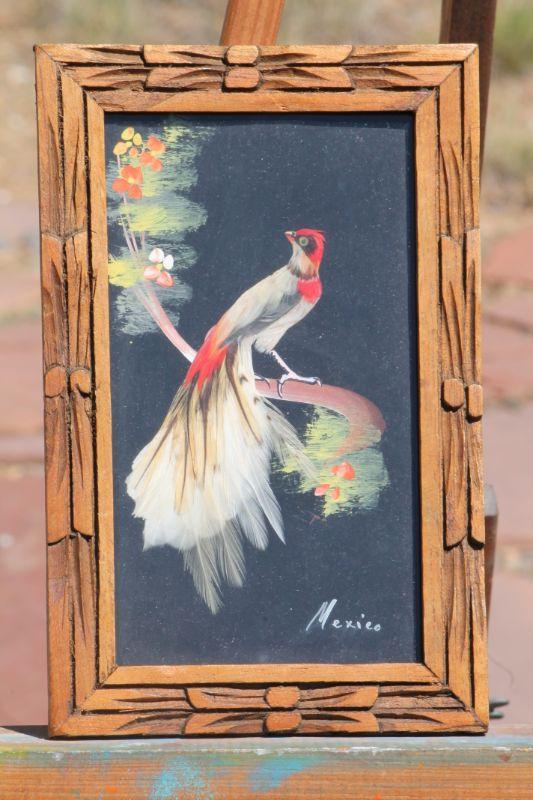 Lot 2-122: Vintage Mexico FeatherCraft Fine Art Bird Wood Framed {8" x 5"}